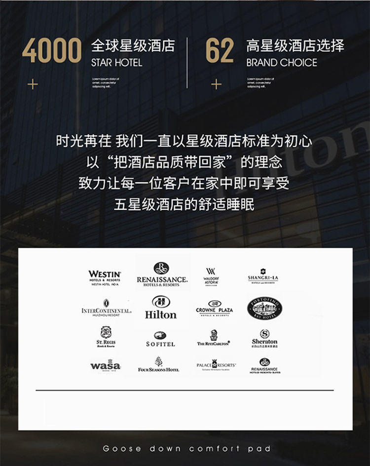 • 5개 호텔 동일한 스타일의 흰색 중간 베개