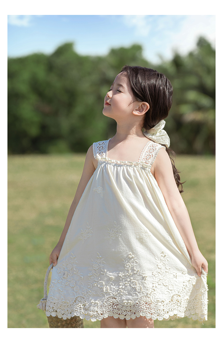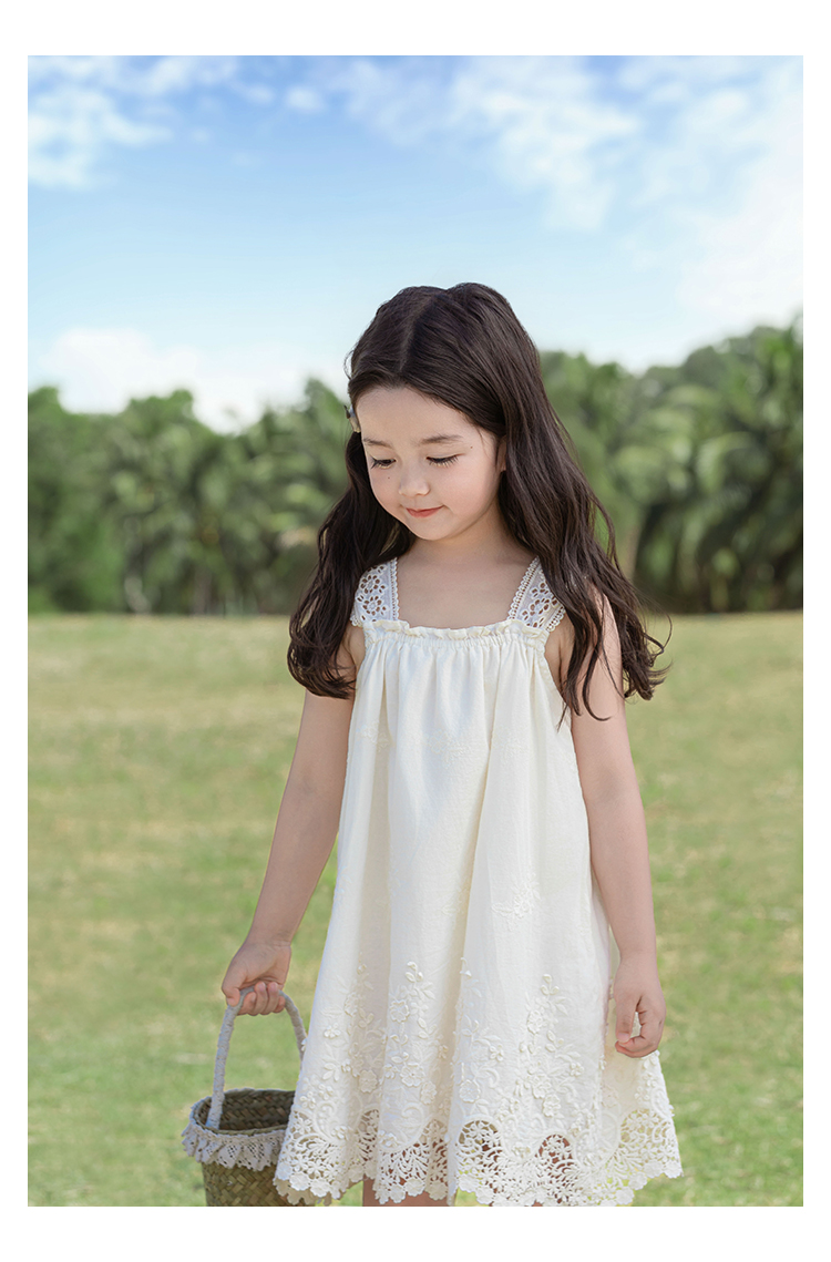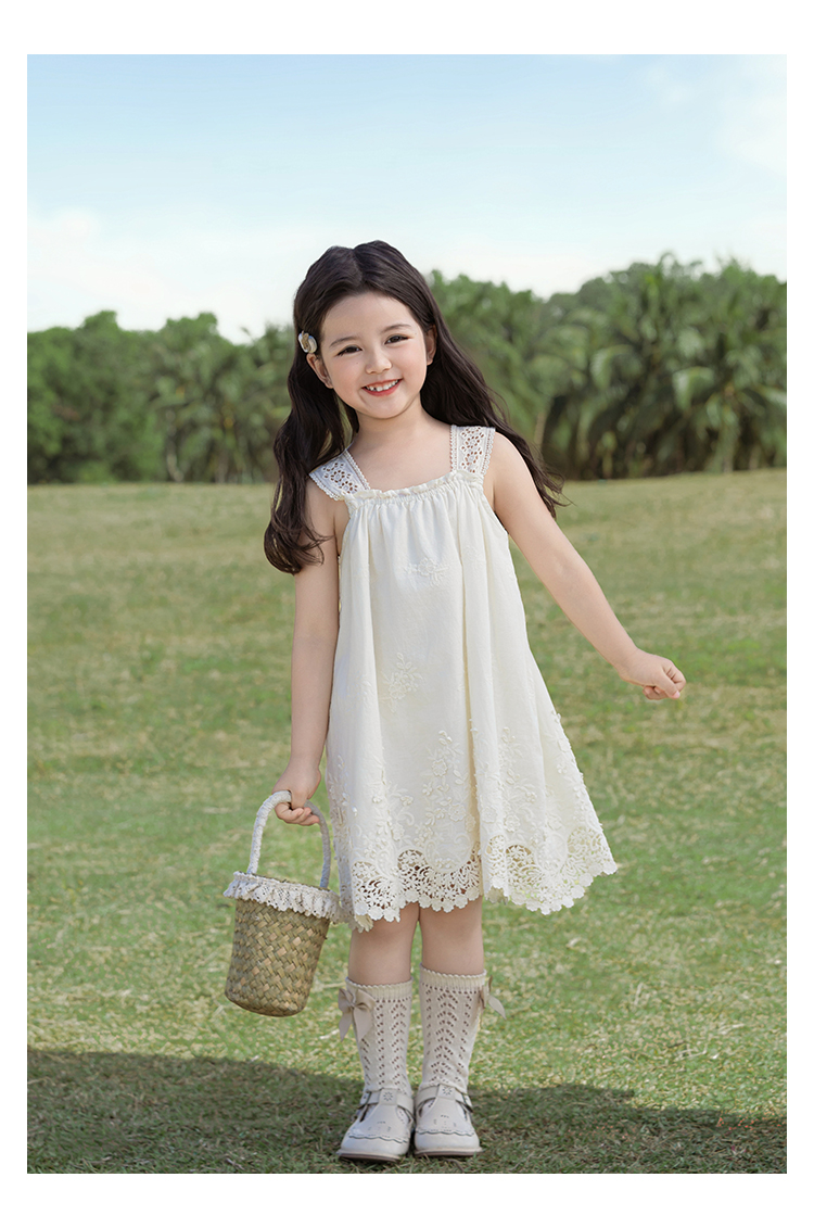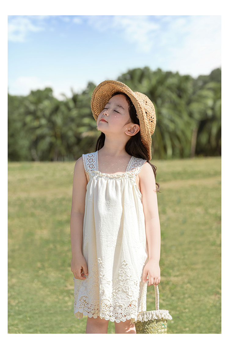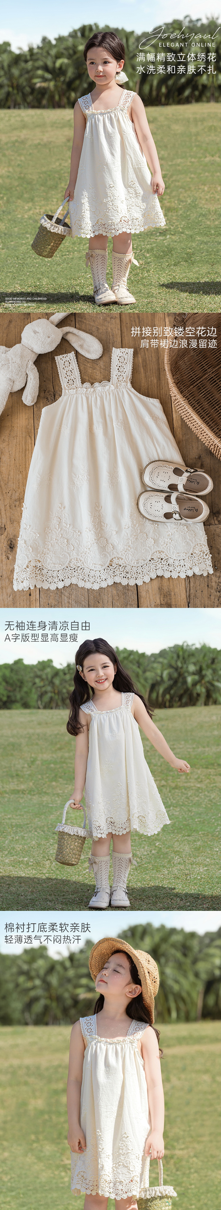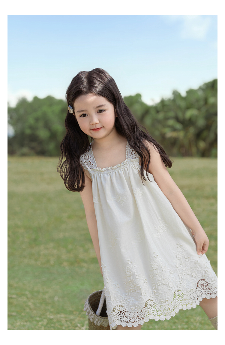 우리부이 여아용 레이스 슬립 드레스 여름 아동용 가볍고 통기성 좋은 민소매 A라인 원피스