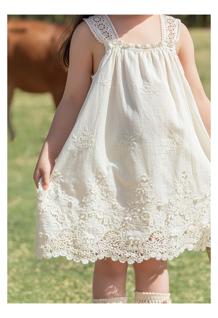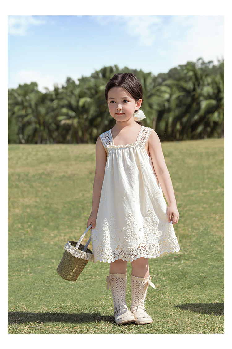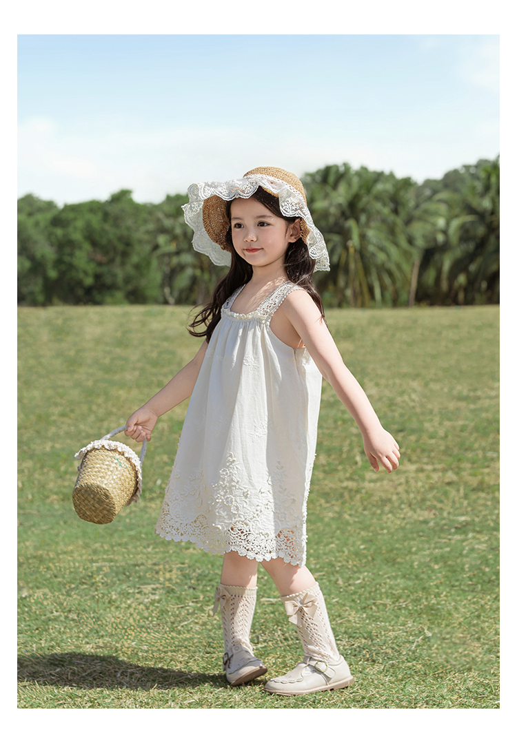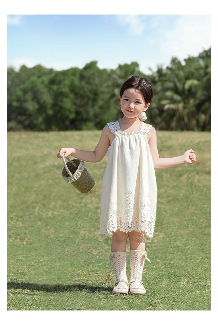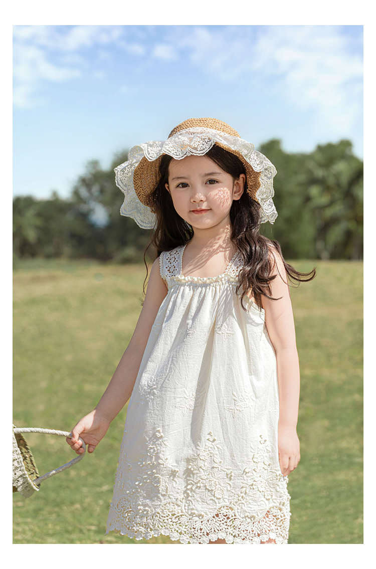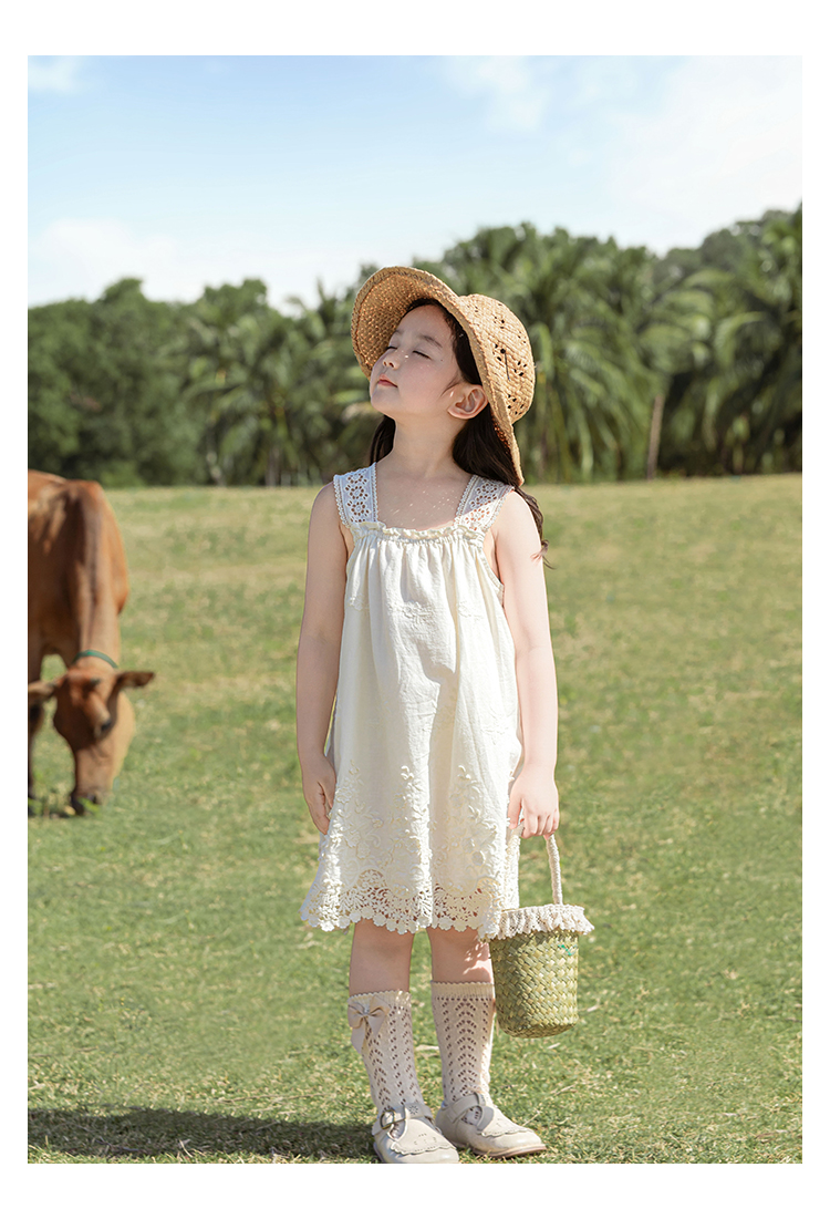 우리부이 여아용 레이스 슬립 드레스 여름 아동용 가볍고 통기성 좋은 민소매 A라인 원피스