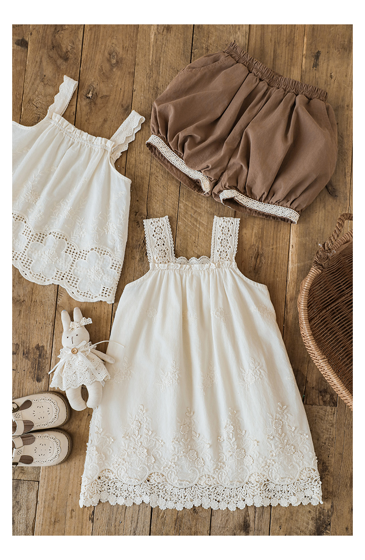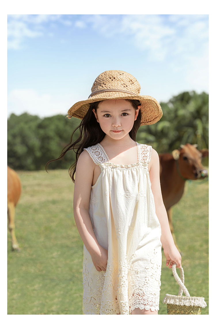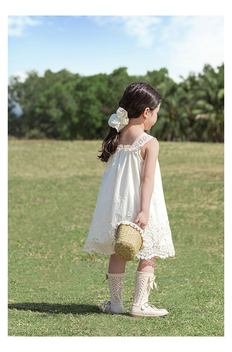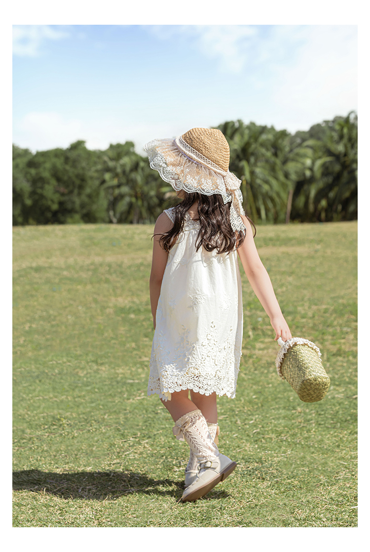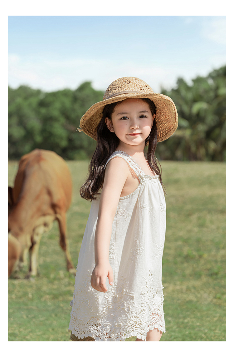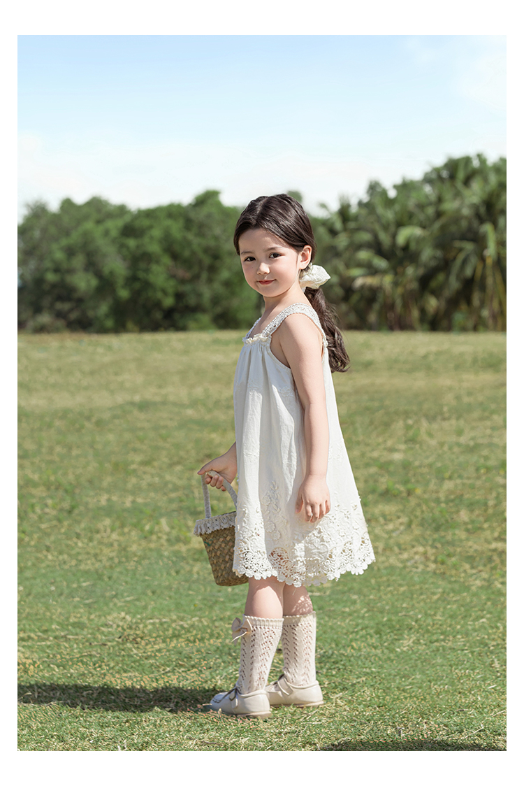 우리부이 여아용 레이스 슬립 드레스 여름 아동용 가볍고 통기성 좋은 민소매 A라인 원피스