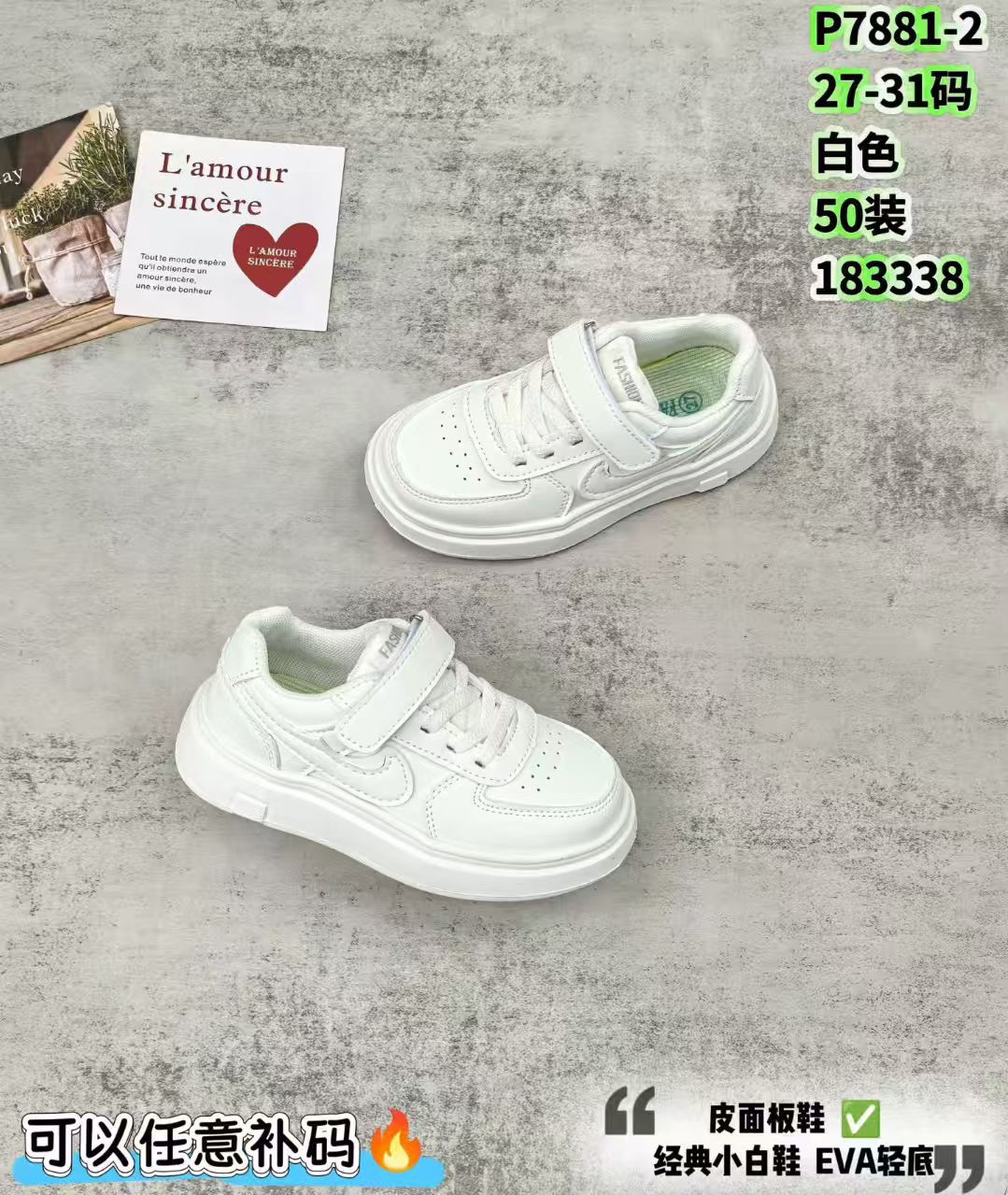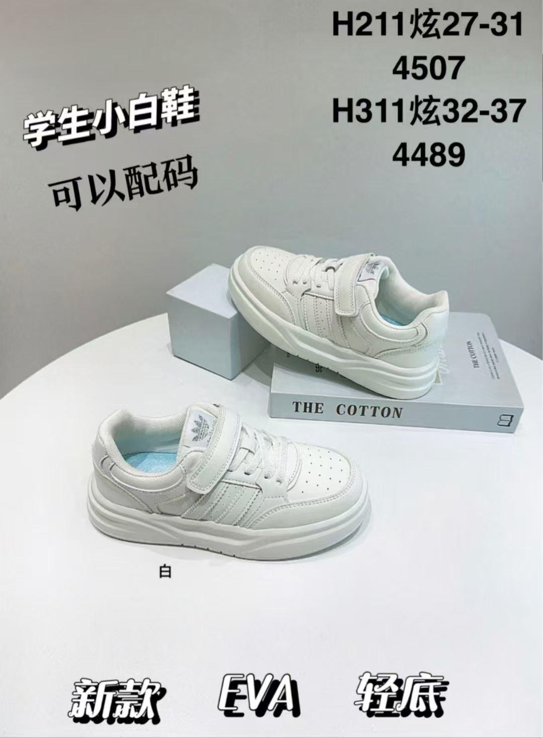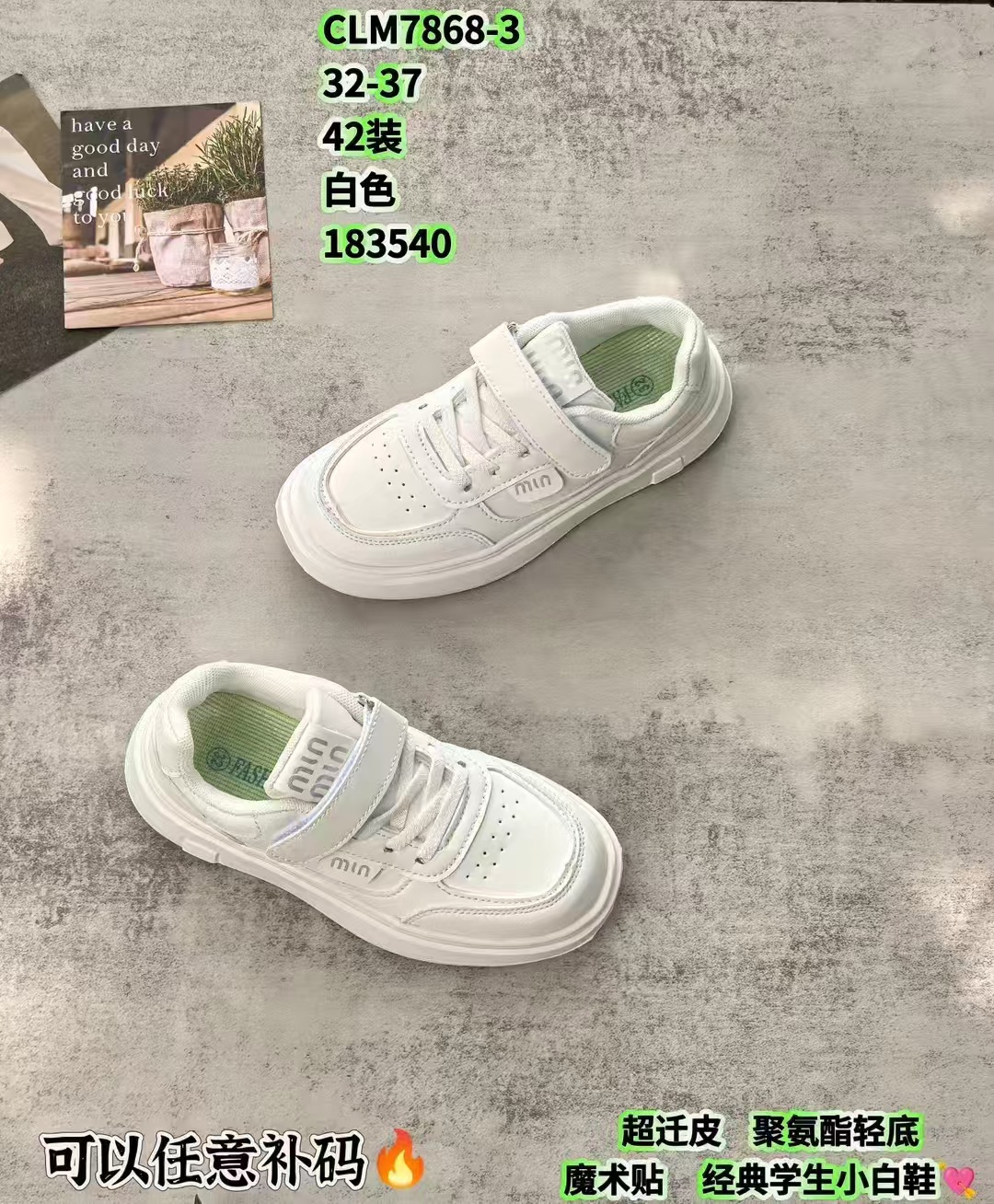 2025년 가을 신상 가죽 가벼운 밑창 흰색 신발 학교 시즌 학생 운동화 순백색 운동화 중대형 아동화스토어 가기