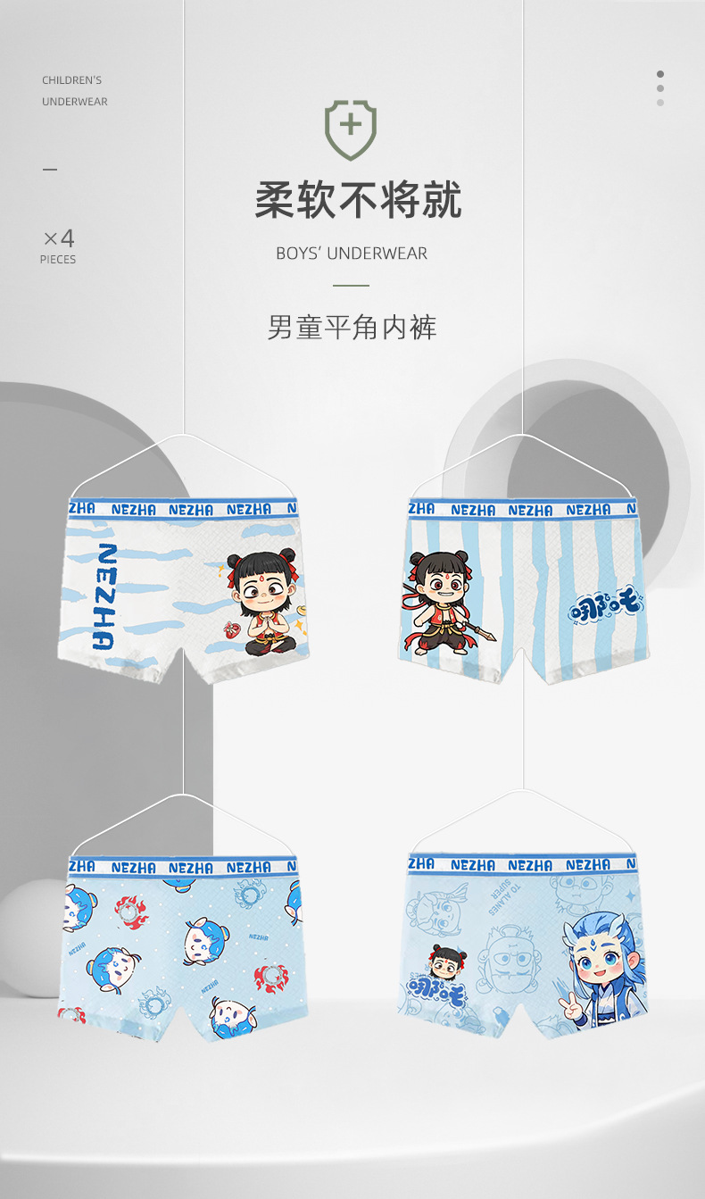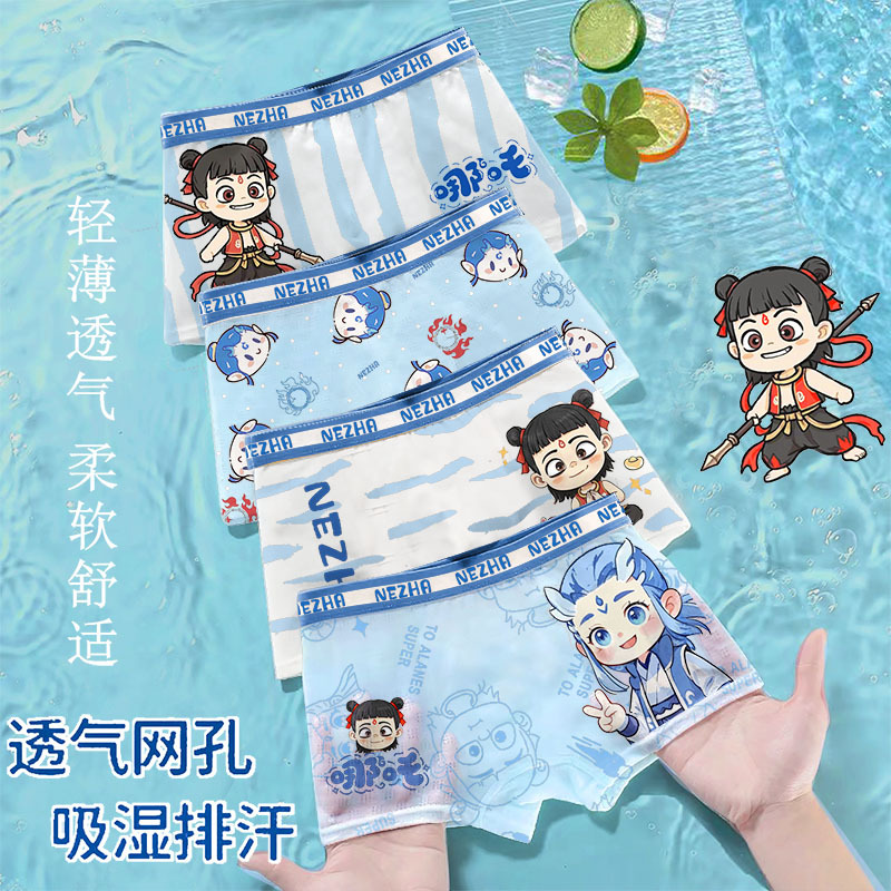 5~18세 청소년을 위한 편안한 메쉬 통기성 사각팬티, 남자아이들이 좋아하는 Nezha No Clip PP 4팩스토어 가기