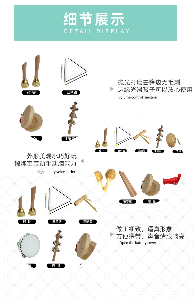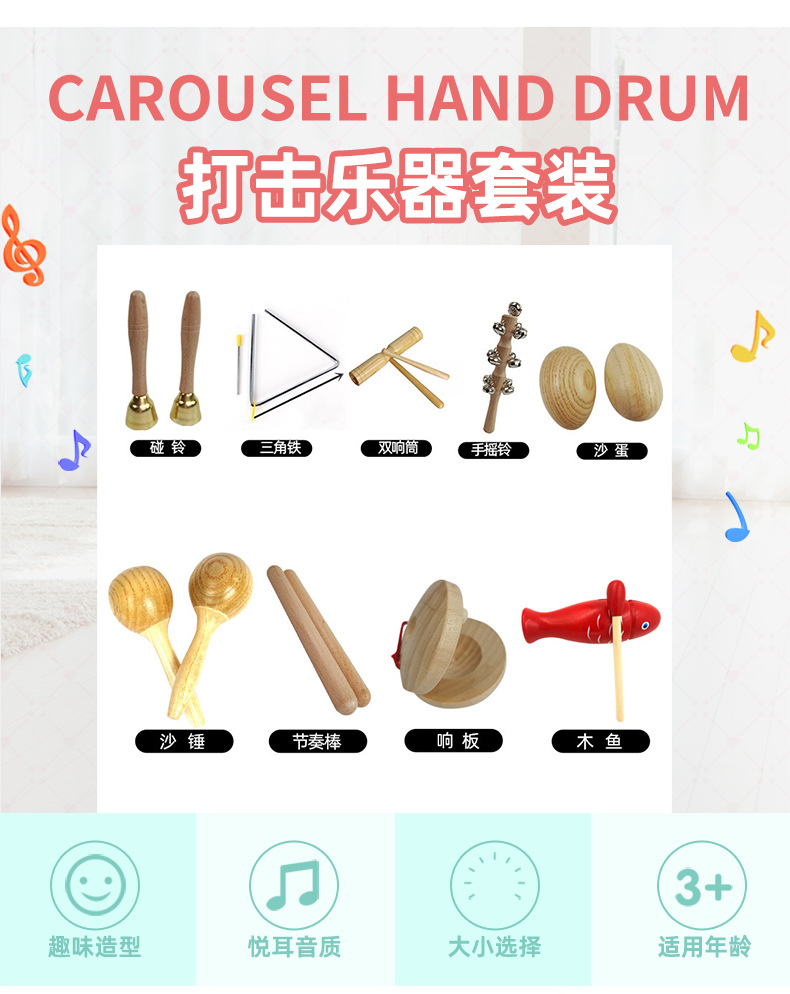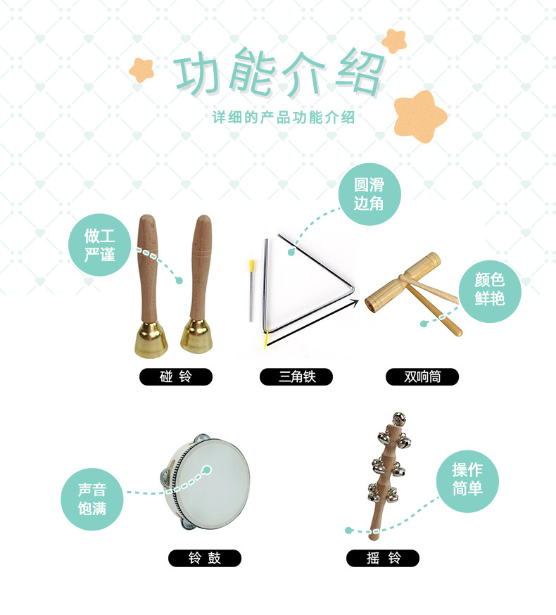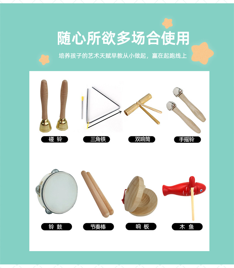 유치원 오르프 타악기 삼각형 철 캐스터네츠 어린이 입문 교육 보조품 샌드 해머 탬버린 더블 캐스터네츠 벨