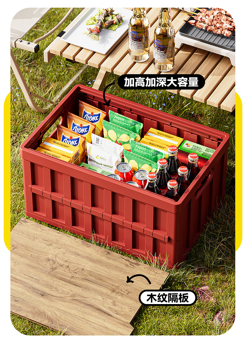 야외 접이식 캠핑 박스 차량용 수납 박스 정리함 플라스틱 박스 트렁크 나무판 도매 해외배송