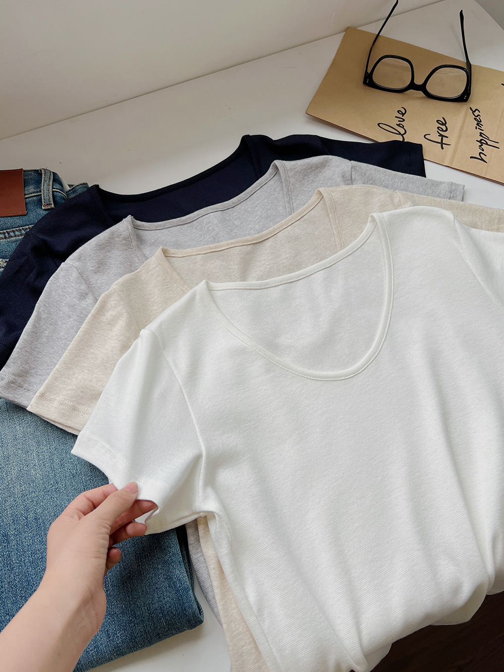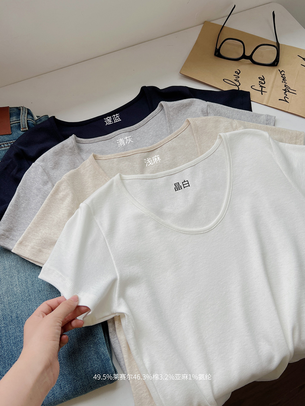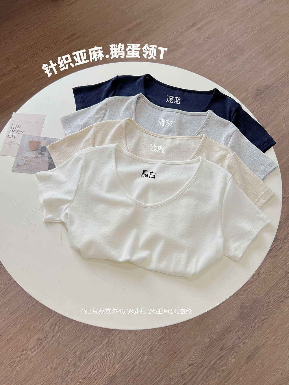 여름용 여성용 텐셀 린넨 구스 에그 칼라 티셔츠 얇고 통기성이 뛰어나며 작은 좁은 가장자리 심플하고 다재다능한 오른쪽 어깨 반팔 탑스토어 가기