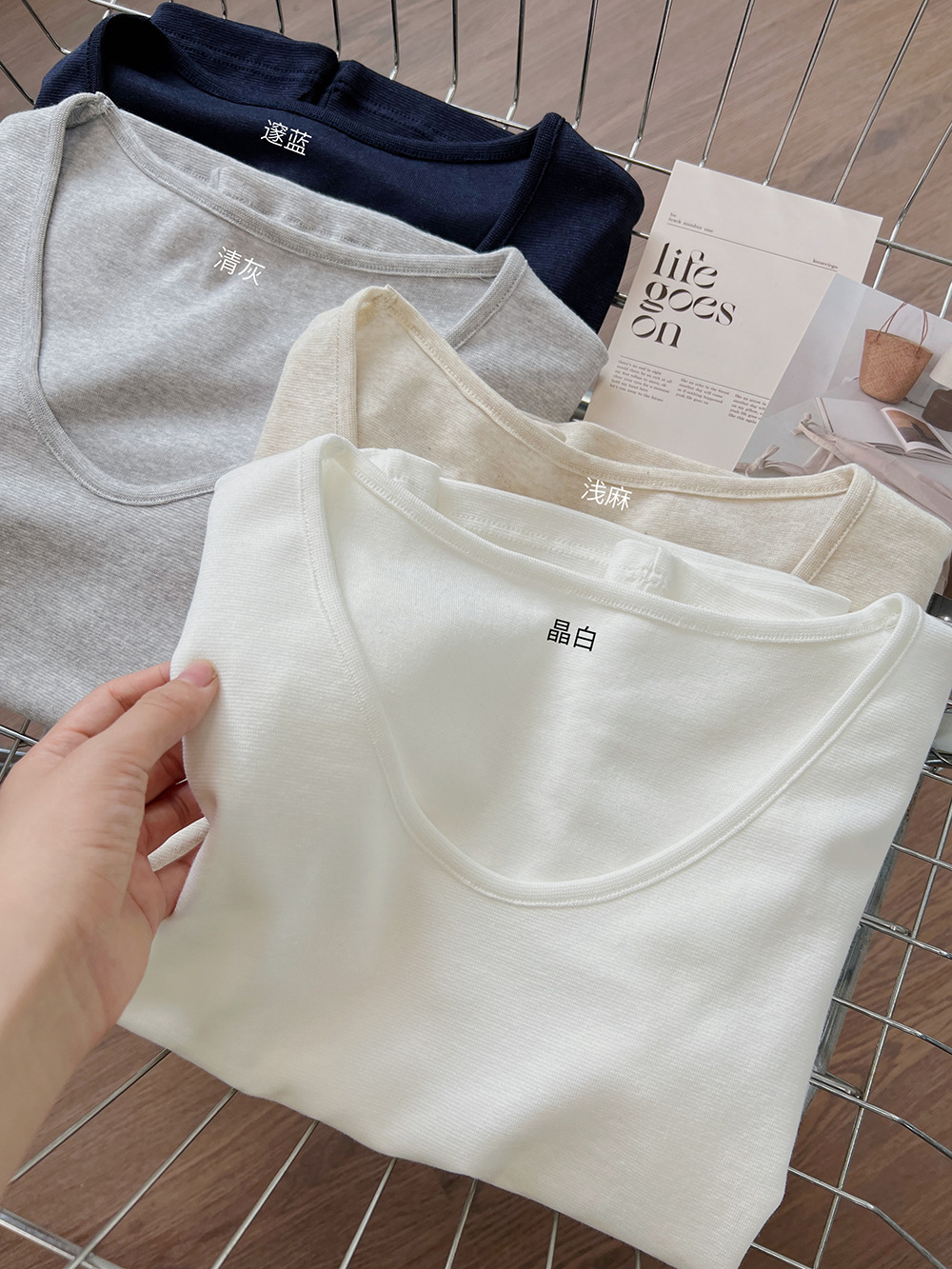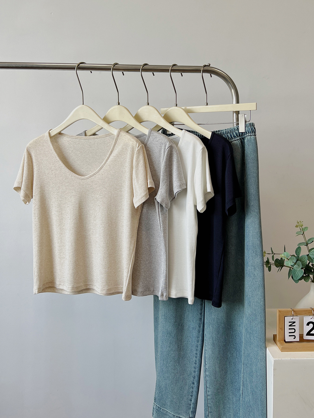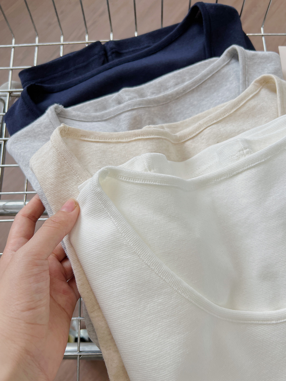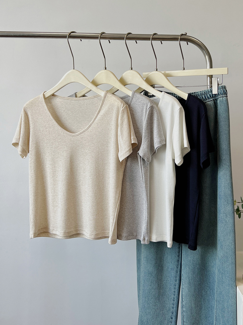 여름용 여성용 텐셀 린넨 구스 에그 칼라 티셔츠 얇고 통기성이 뛰어나며 작은 좁은 가장자리 심플하고 다재다능한 오른쪽 어깨 반팔 탑스토어 가기