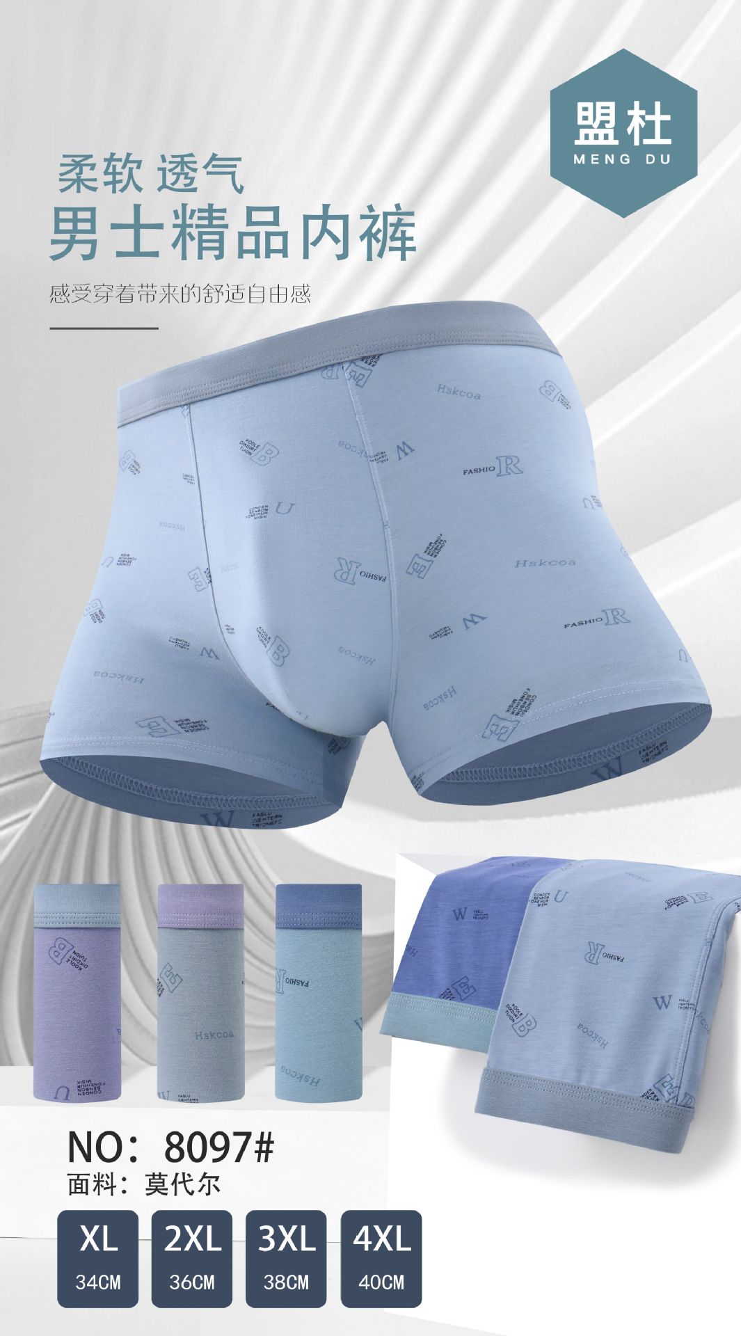 Mengdu 속옷 남성용 심플 캐주얼 스포츠 편안하고 통기성이 뛰어난 상체 피부 친화적인 부드러운 사각형 복서 팬티스토어 가기