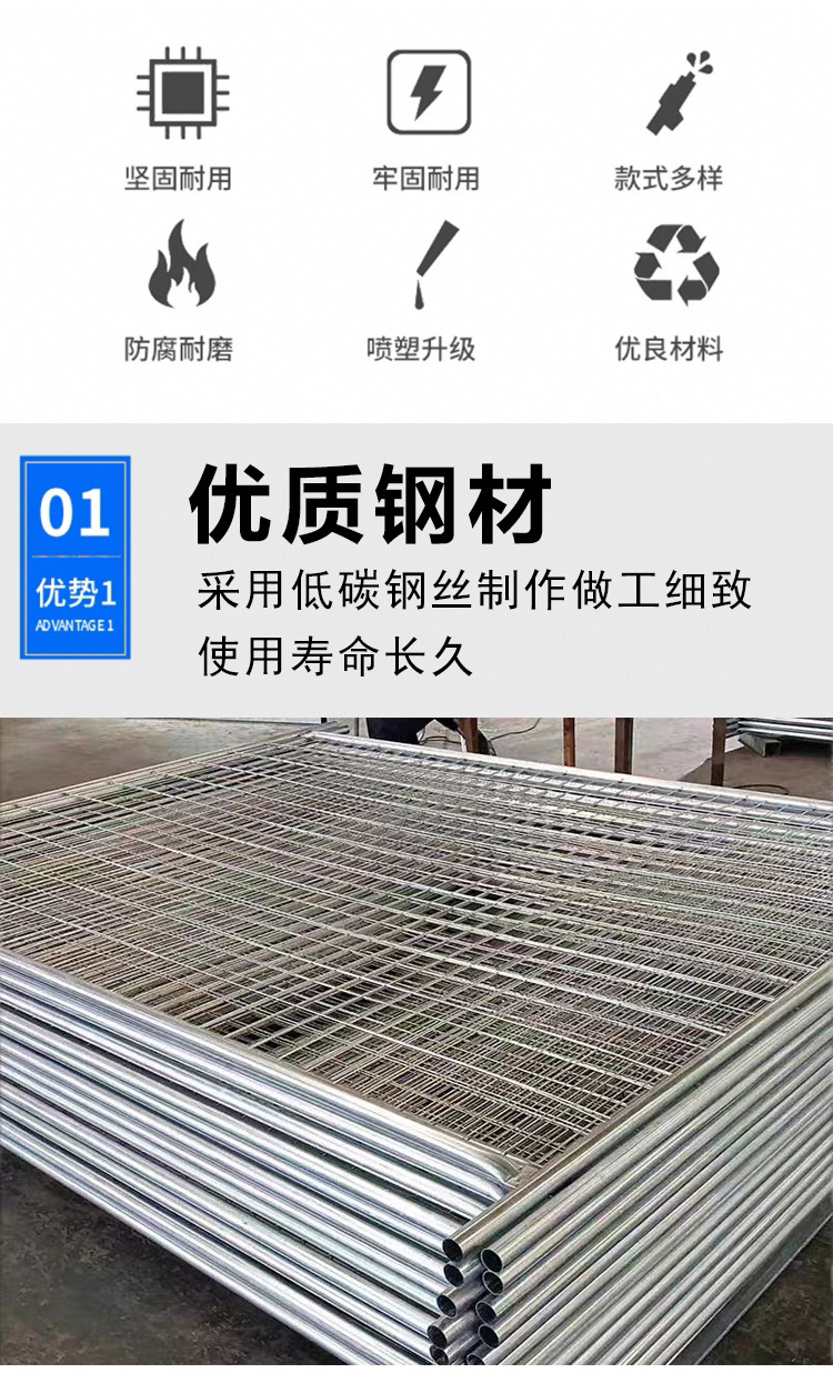호주 스타일 울타리 재사용 가능한 녹 방지 임시 격리 가드 레일 건설 현장 보호 네트 공장 직접 판매스토어 가기