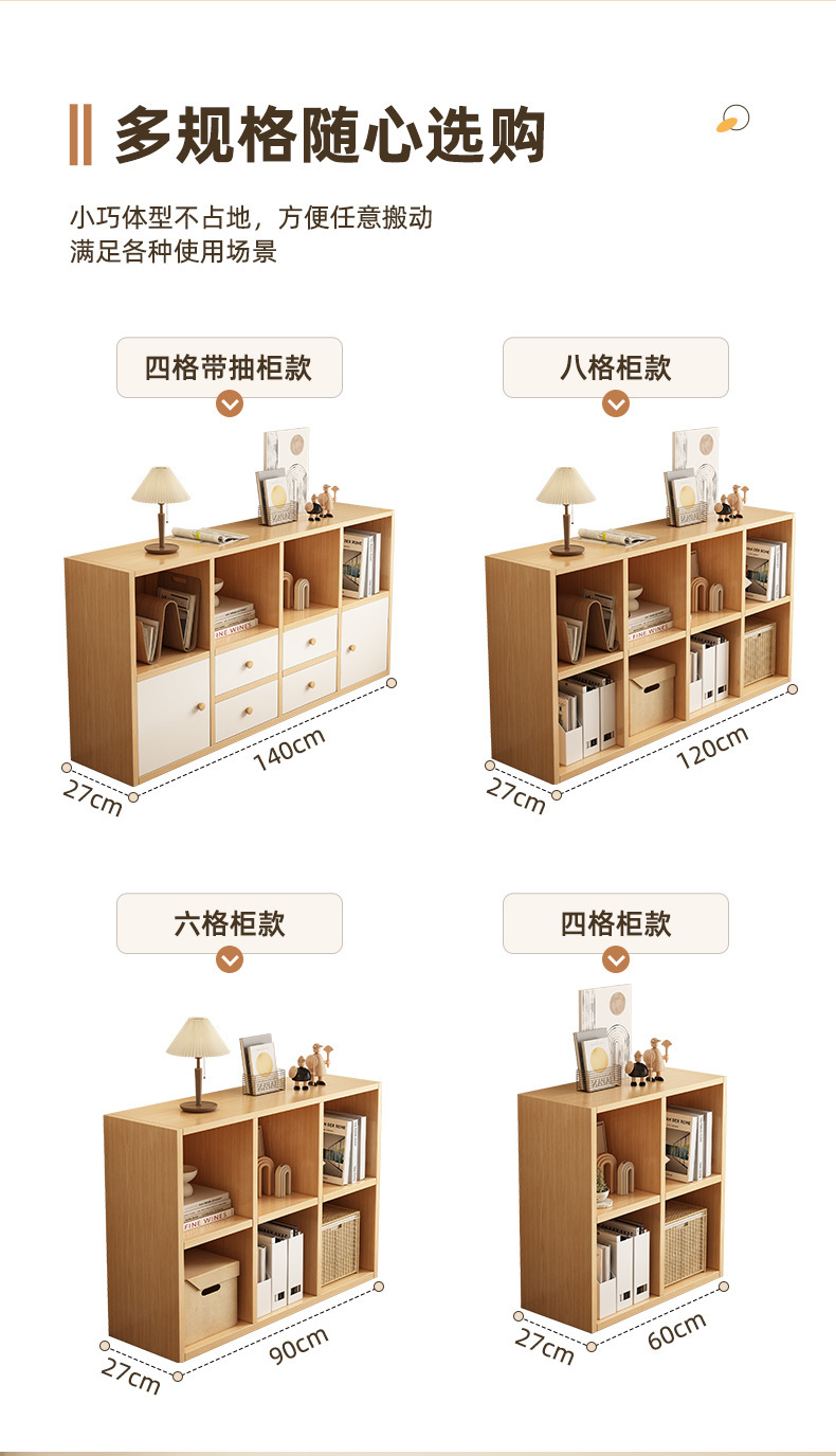 책장 수납장 바닥형 책장 낮은 캐비닛 격자형 캐비닛 가정용 다층 학생용 수납 서랍 격자형 캐비닛스토어 가기