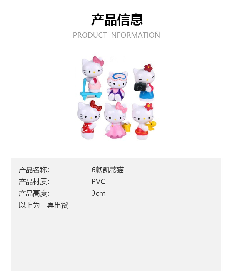 6가지 스타일의 스케이트보드 KT 고양이 피규어 장식품, 만화 KT 고양이 애니메이션 장난감, 꽃다발 인형, 자동차 장식품, 케이크 장식