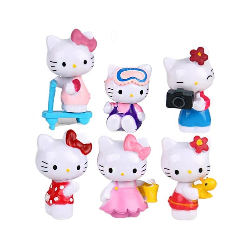 6가지 스타일의 스케이트보드 KT 고양이 피규어 장식품, 만화 KT 고양이 애니메이션 장난감, 꽃다발 인형, 자동차 장식품, 케이크 장식스토어 가기