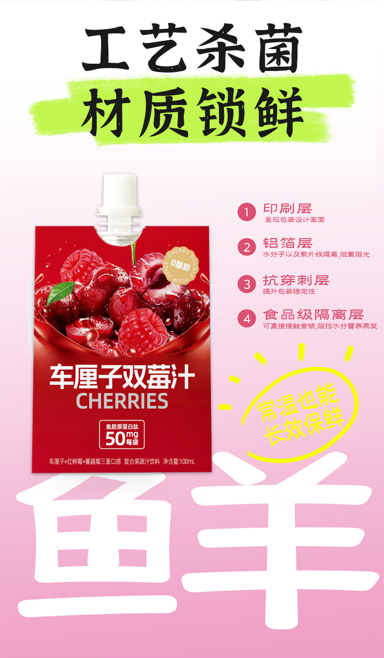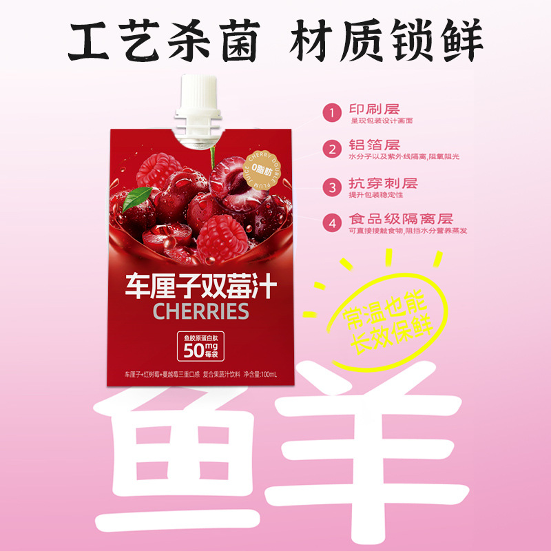 定制车厘子双莓汁代工蔓越莓浓缩汁鱼胶原蛋白肽100ml果蔬汁贴牌