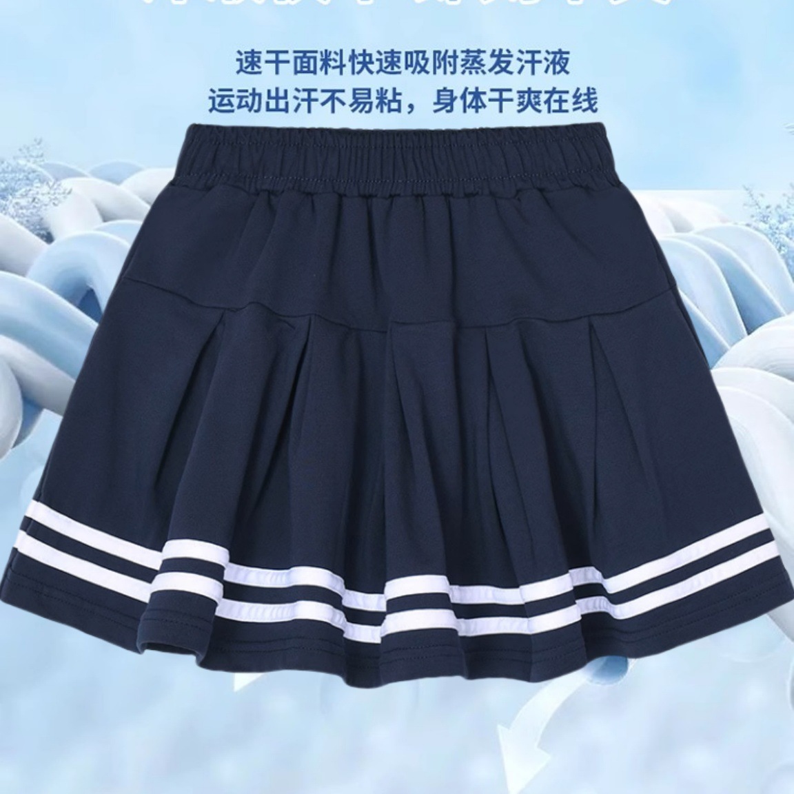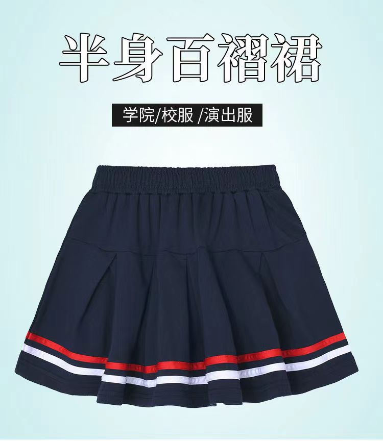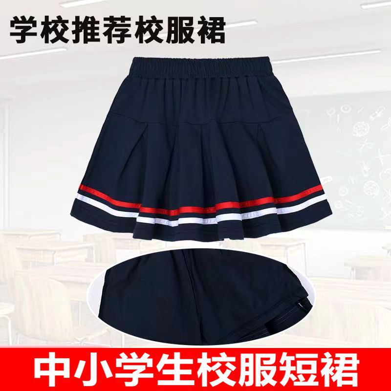 여아 스커트 네이비 블루 빨간색과 흰색 줄무늬 어린이 주름 스커트 대학 스타일 초등 및 중등 학교 교복 짧은 치마바지
