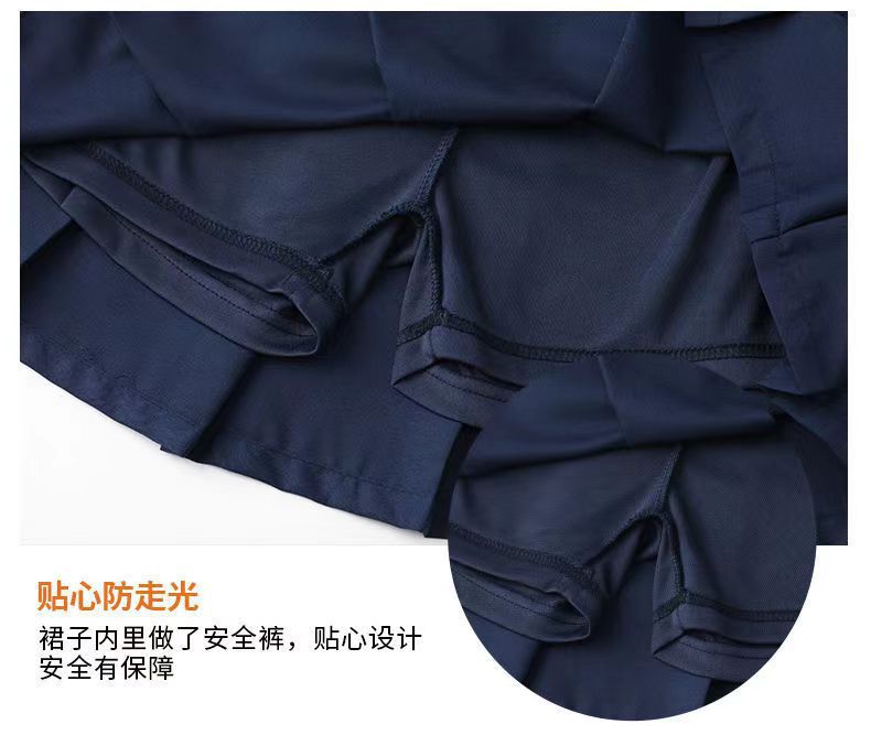 • 빨간색과 흰색 줄무늬 아이스 실크 스커트, 네이비 블루 - 노출 방지 안감