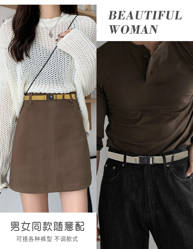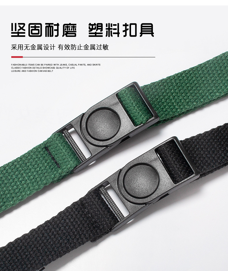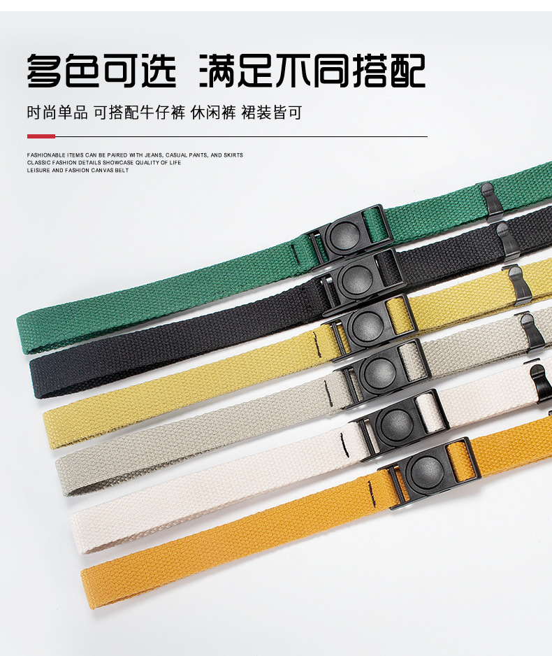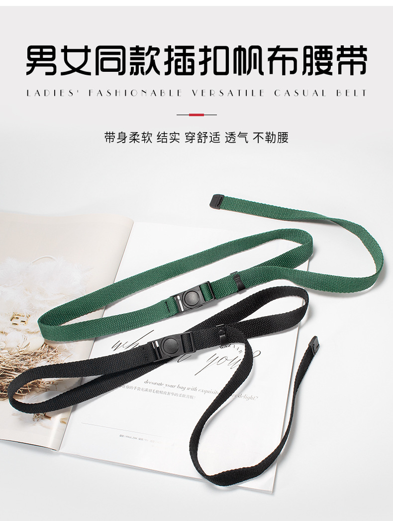 남성과 여성을 위한 2cm 무금속 버클 캔버스 벨트, 범용 얇고 좁은 장식 패브릭 버클 벨트, 심플하고 트렌디함