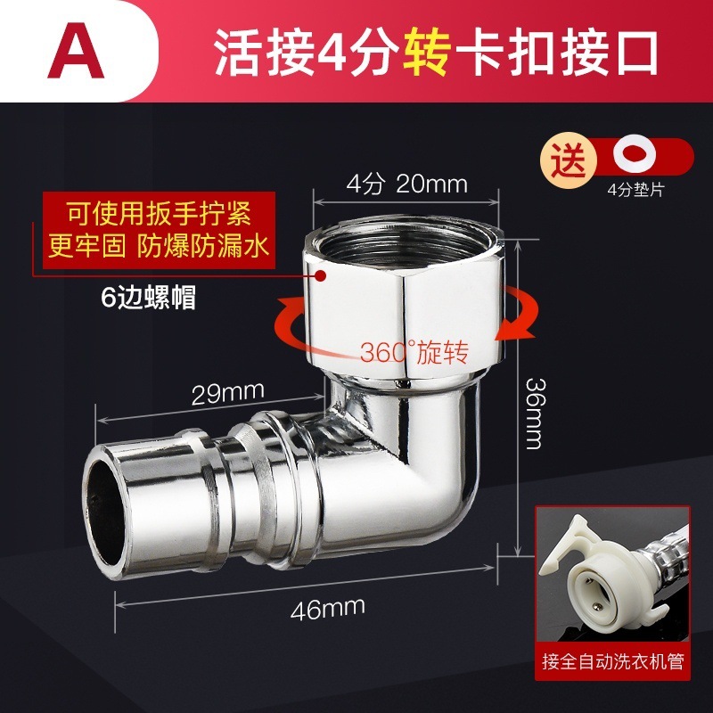 全铜4分活接90直角弯头洗衣机水龙头进水管出水弯头嘴卡扣转接头