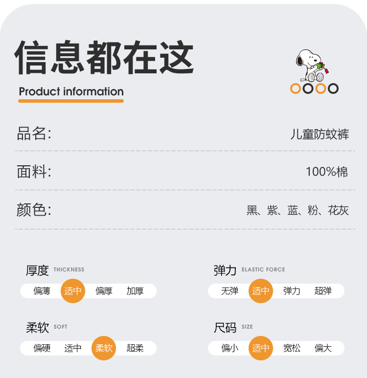 스누피 소년 바지 100면 여름 통기성 어린이 바지 레깅스 면 소년 모기 방지 바지 편안한스토어 가기