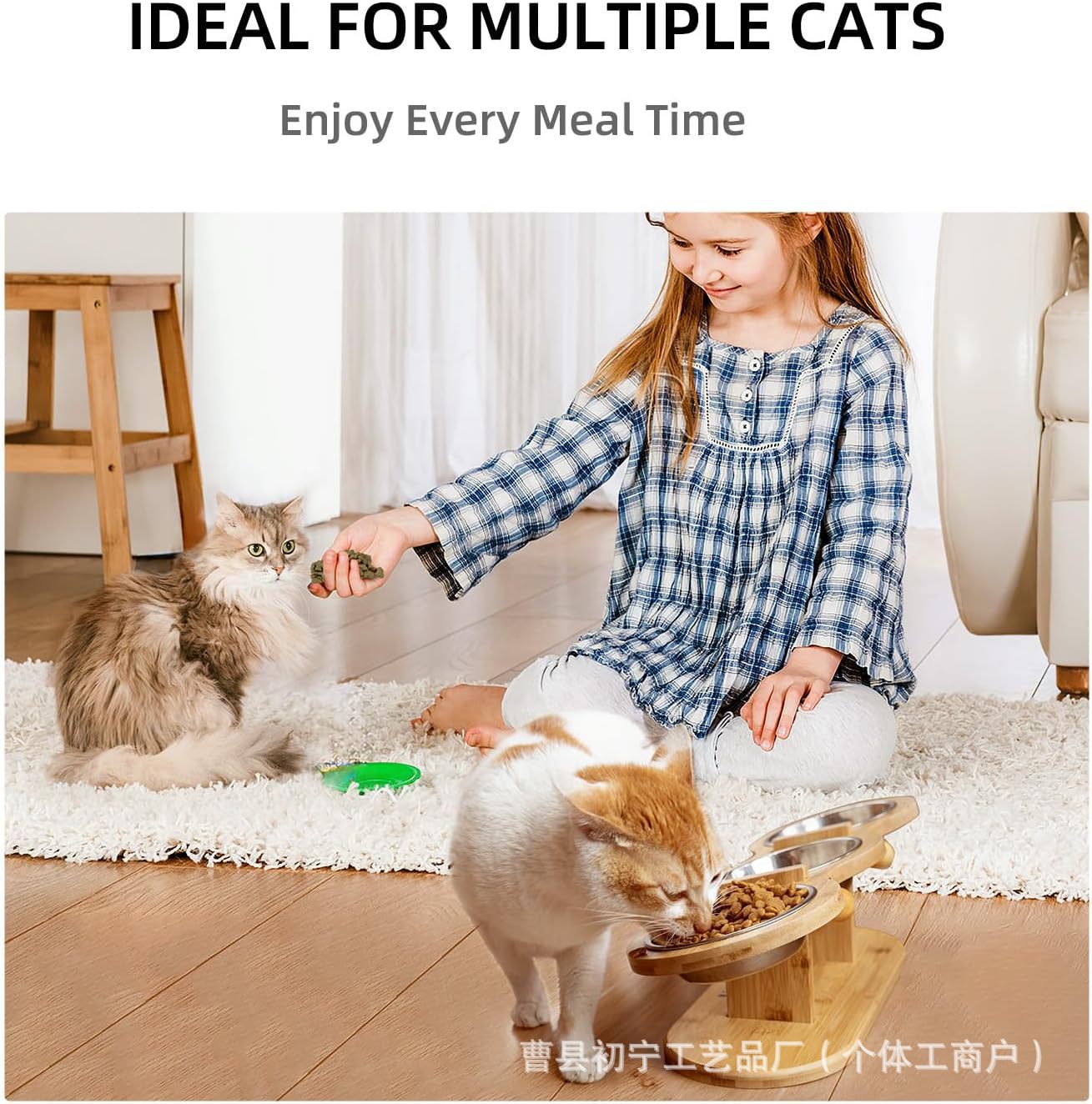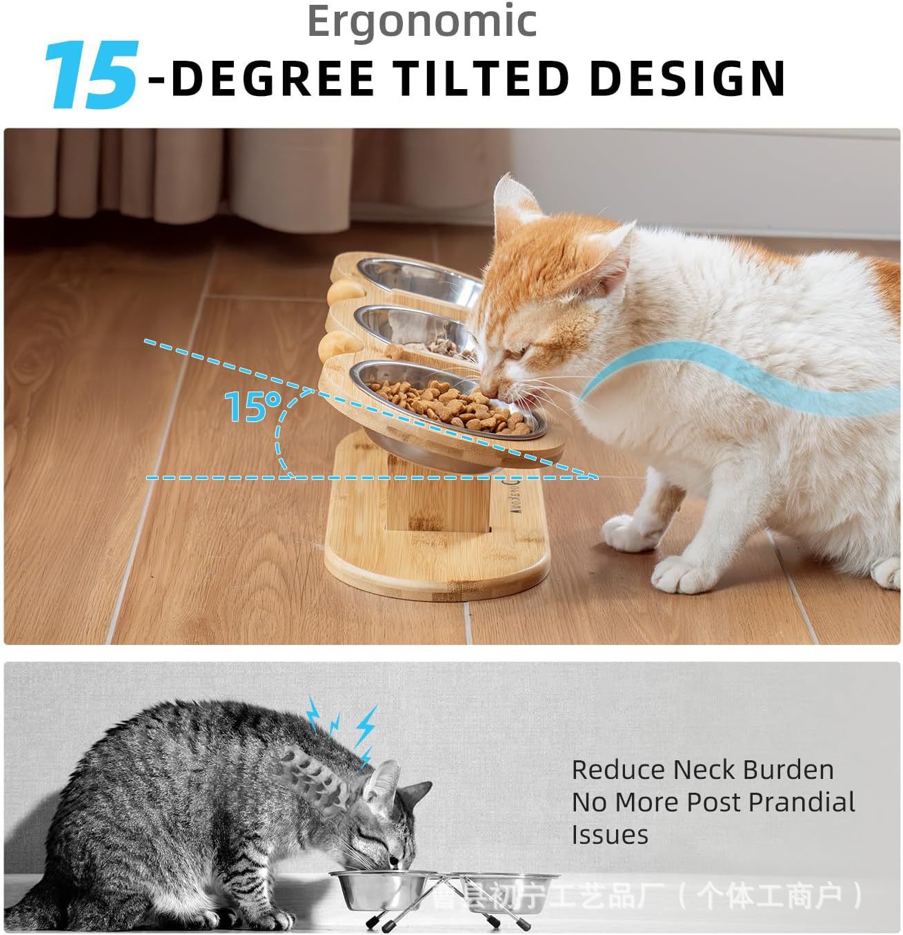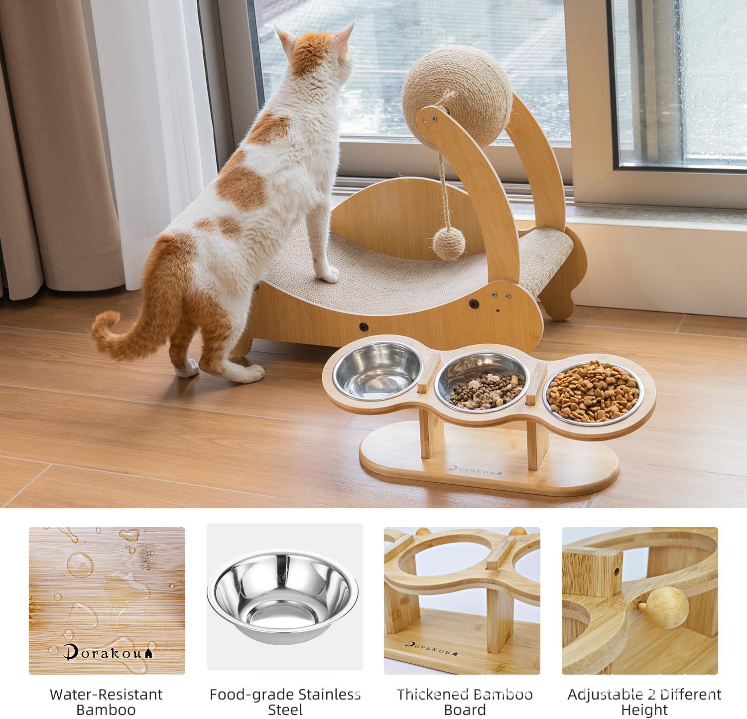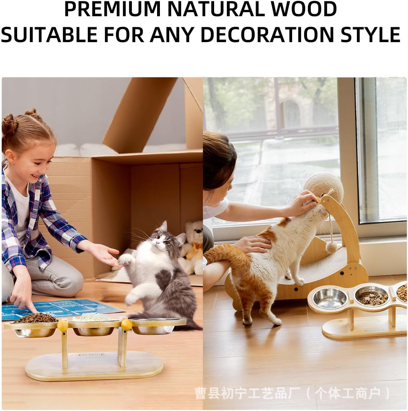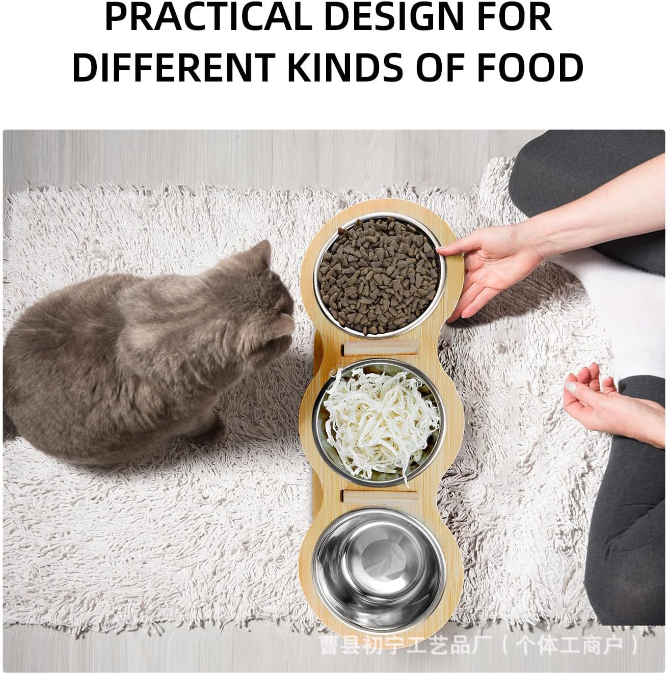 단단한 나무 고양이 그릇 먹이 그릇 랙 동물 용품 고양이와 개 피더 바닥 스탠딩 높이 3 그릇 먹이 랙