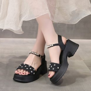 여성용 요정 스타일 라인스톤 샌들 2025 여름 플랫폼 두꺼운 밑창 슬리밍 로마 패션 아우터 비치 샌들스토어 가기