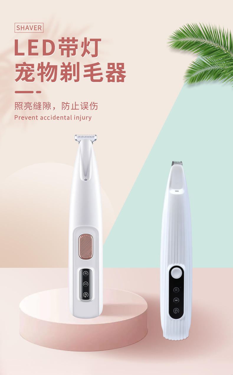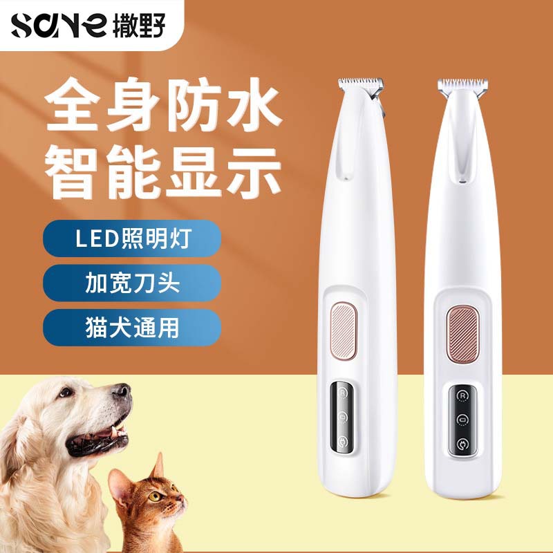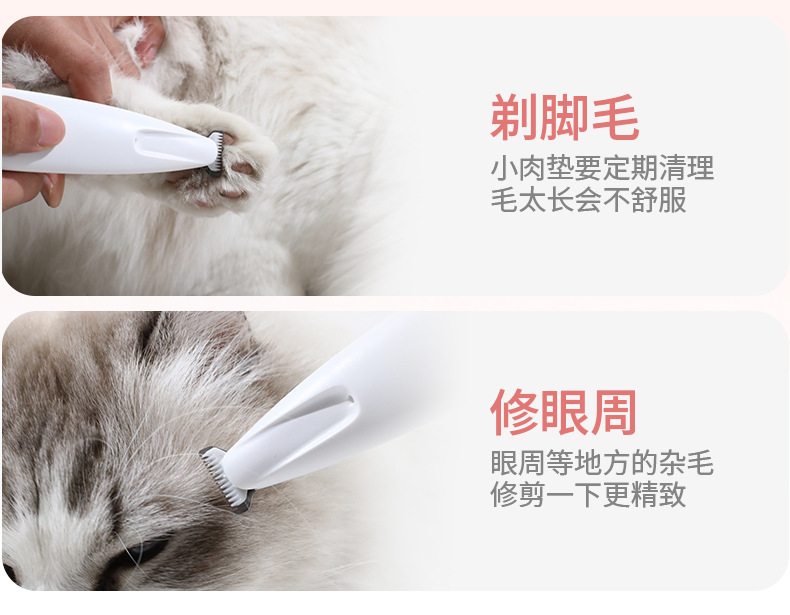 고양이 발 면도기, 방수 전기 애완동물 발 면도기, 충전식 이발기, 조명 포함, 개 털 트리머 및 면도기
