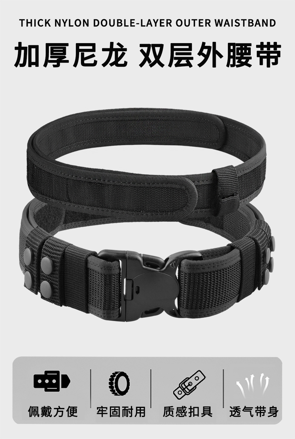 국경 간 인기 있는 두꺼운 나일론 짠 외부 벨트 플라스틱 버클 다기능 전술 벨트 벨크로 내부 및 외부 벨트