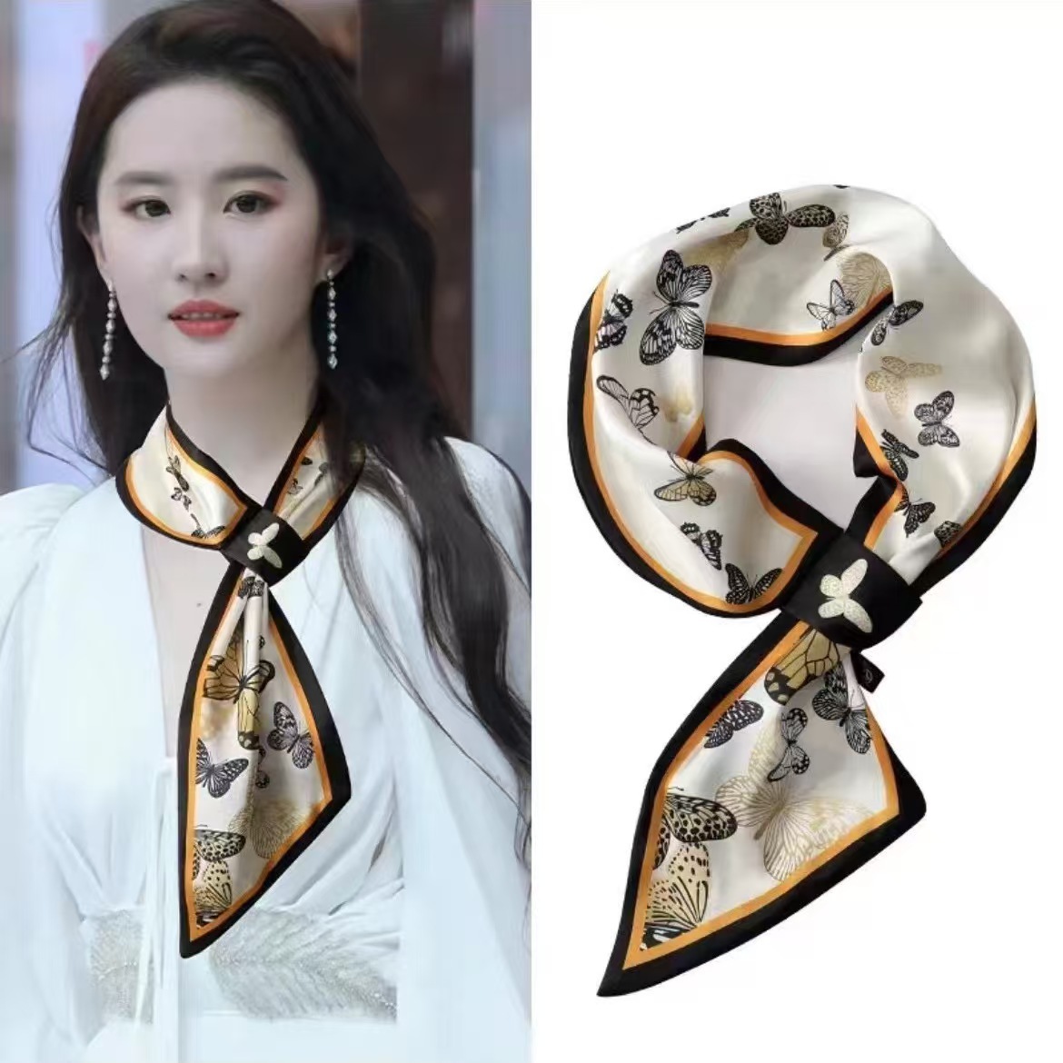 작은 귀 실크 스카프 머리띠 작은 긴 리본 여성 봄, 가을 목 보호대 목 거즈 스카프 게으른 사람들을위한 매칭 셔츠스토어 가기