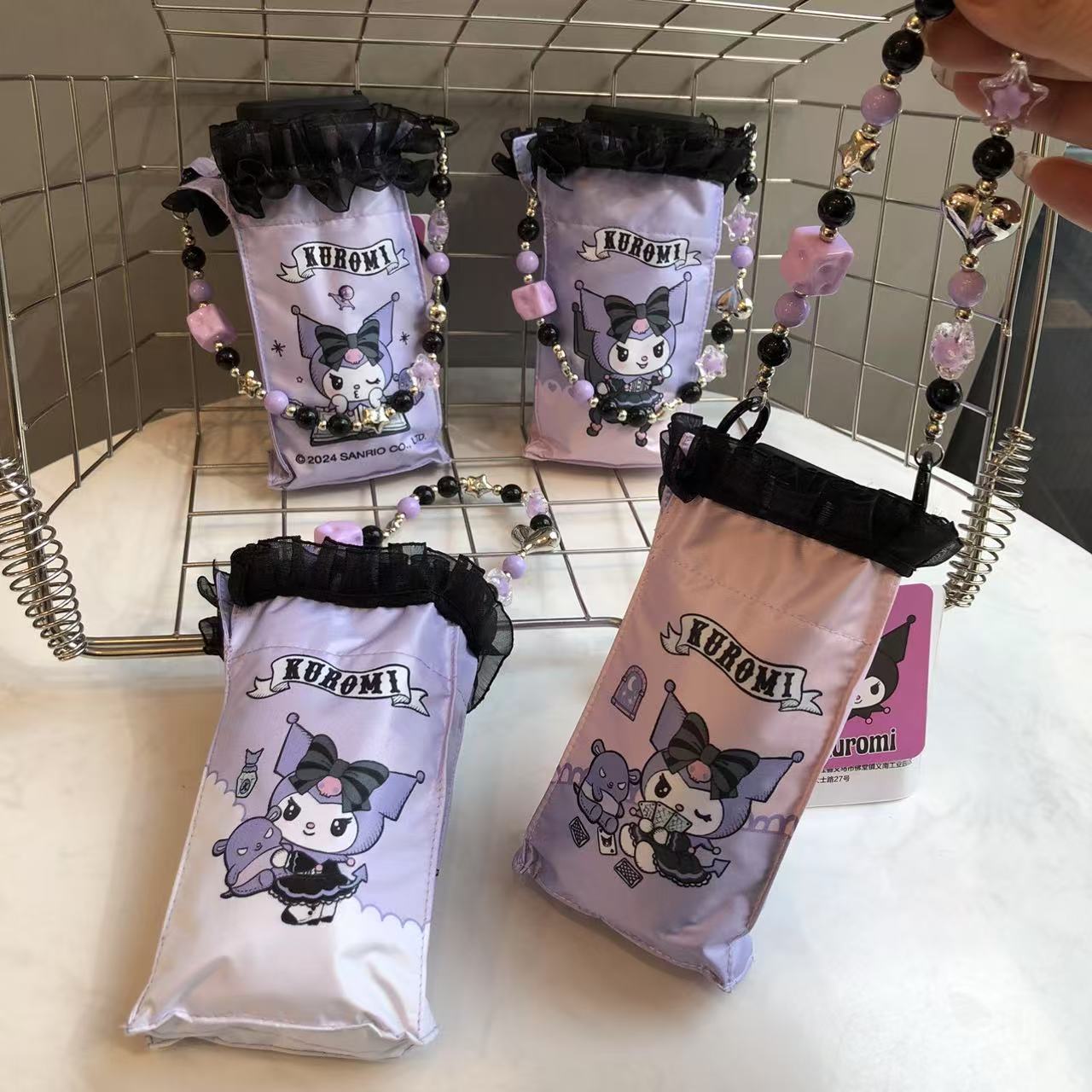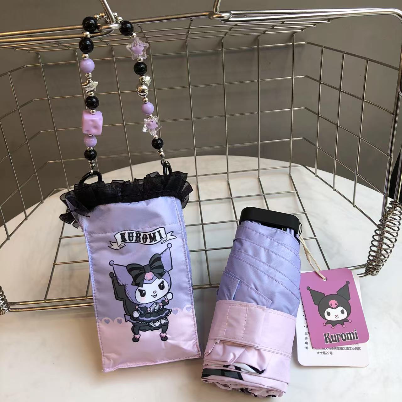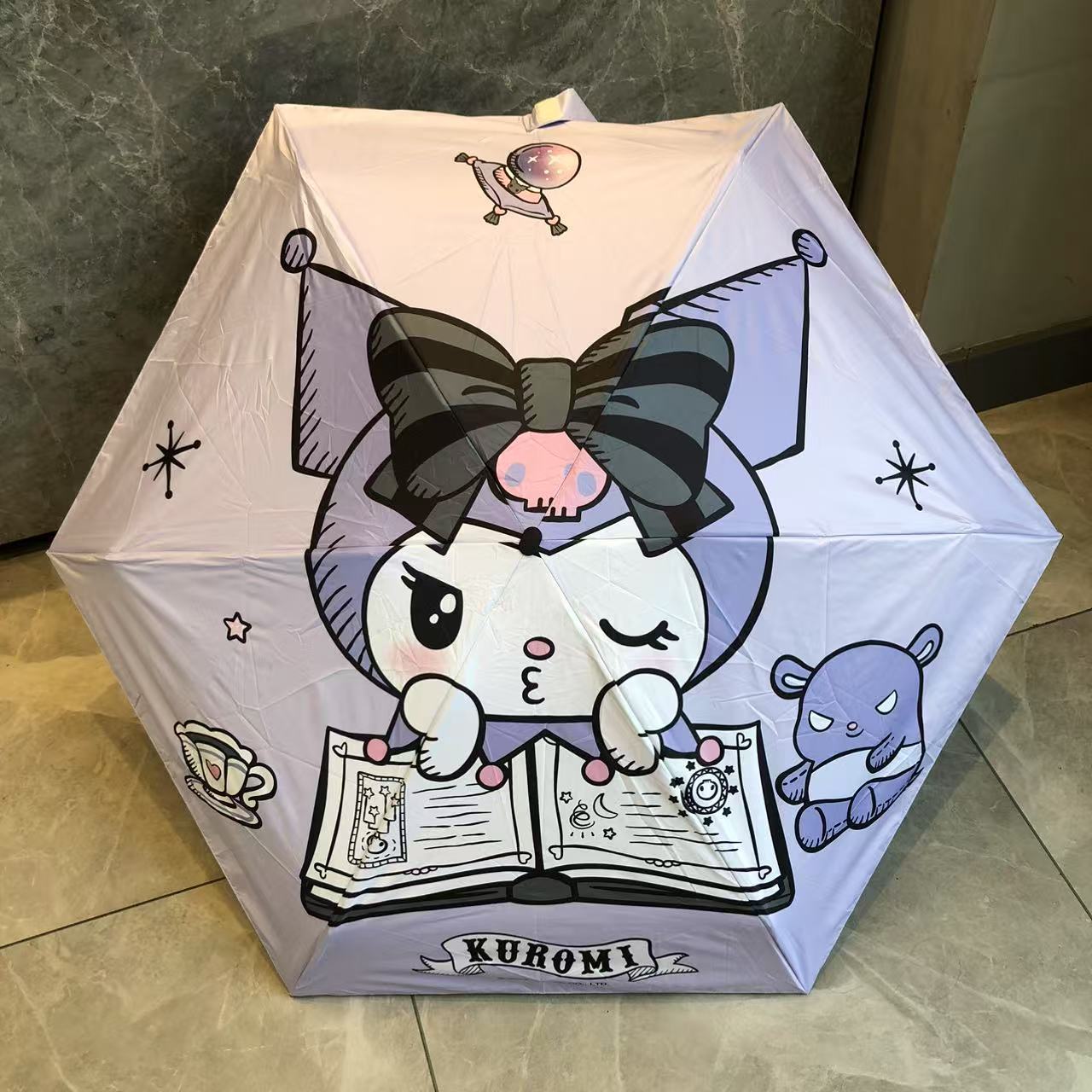 산리오 정품 공인 쿠로미 비닐 자외선 차단 및 자외선 차단 접이식 휴대용 우산