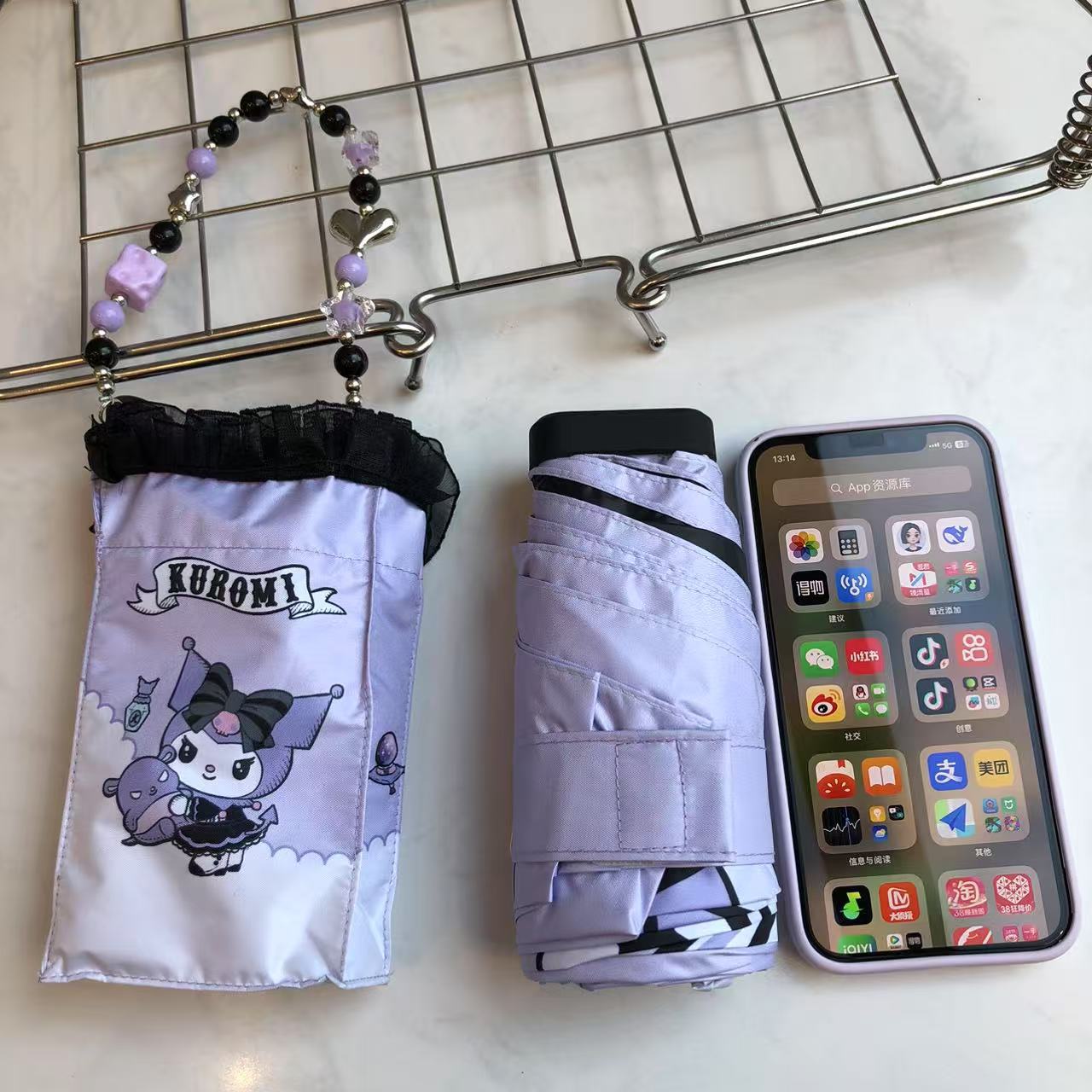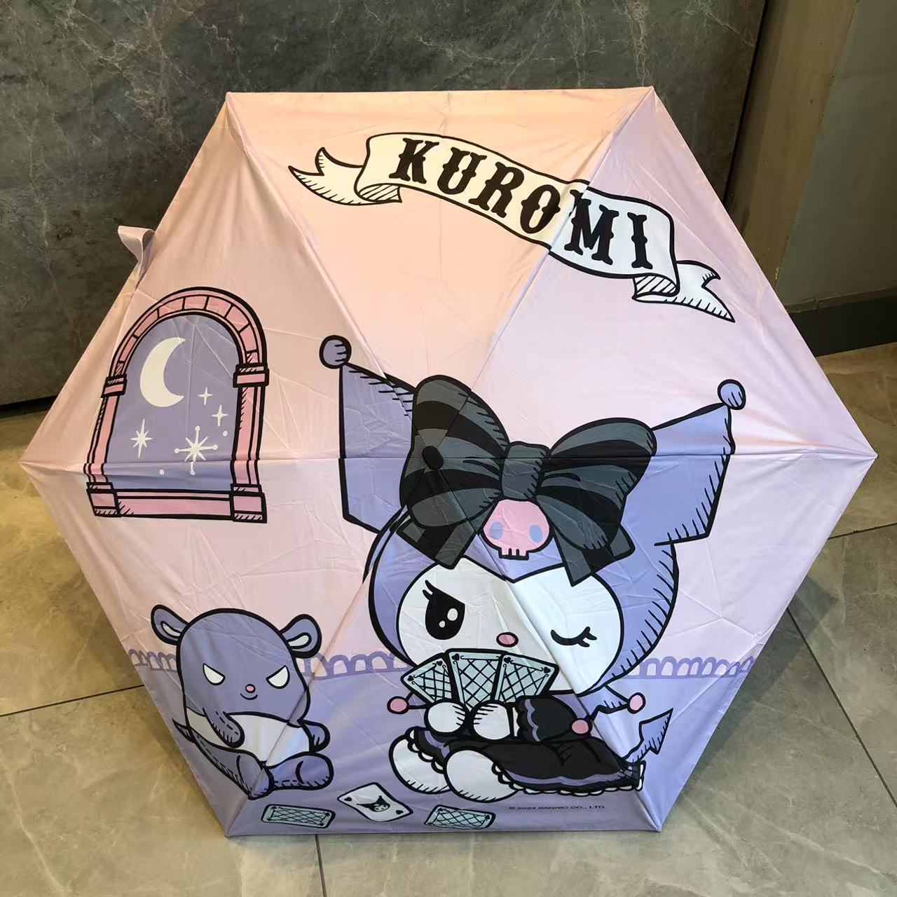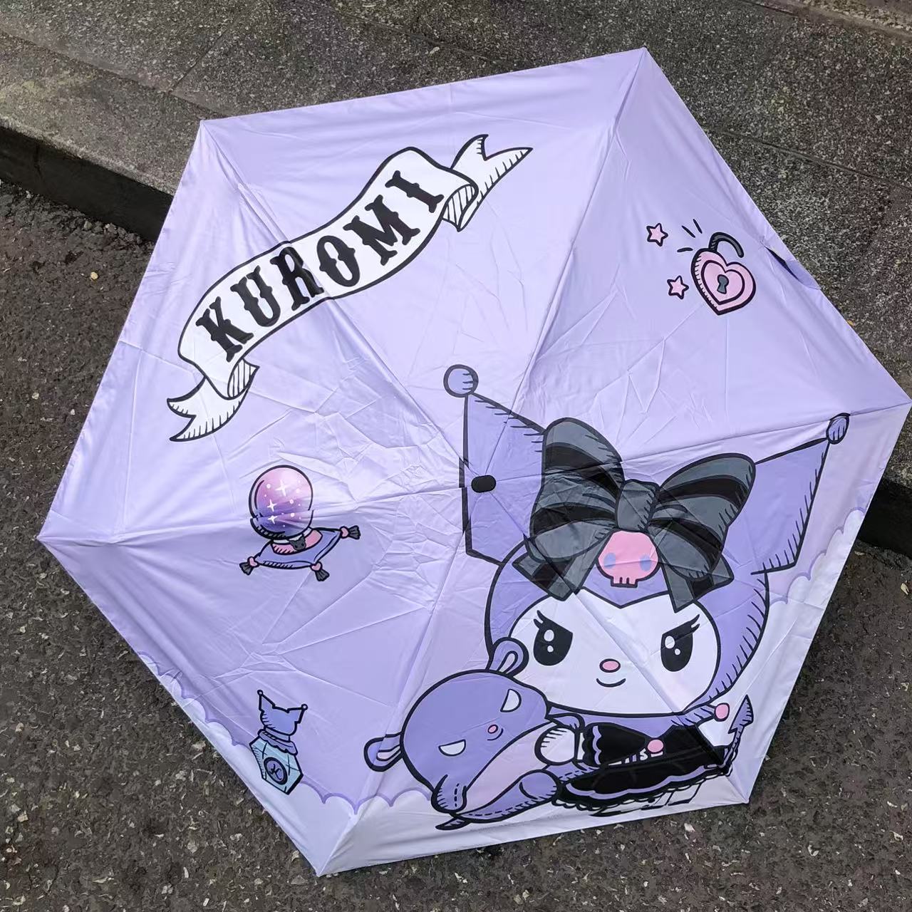 산리오 정품 공인 쿠로미 비닐 자외선 차단 및 자외선 차단 접이식 휴대용 우산