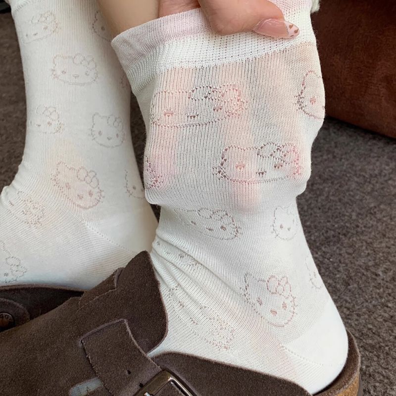여성용 양말, 여름용 얇은 메쉬 양말, 통기성 버블 엣지, 대비되는 색상의 종아리 양말, 귀여운 고양이 레이스, 학생용 다용도스토어 가기