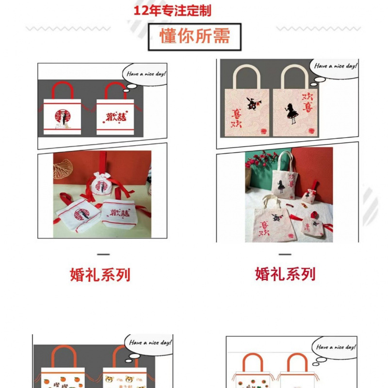 • 囍 캔버스 가방, 양면 인쇄 + 무료 리본