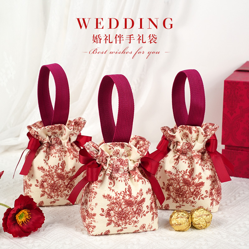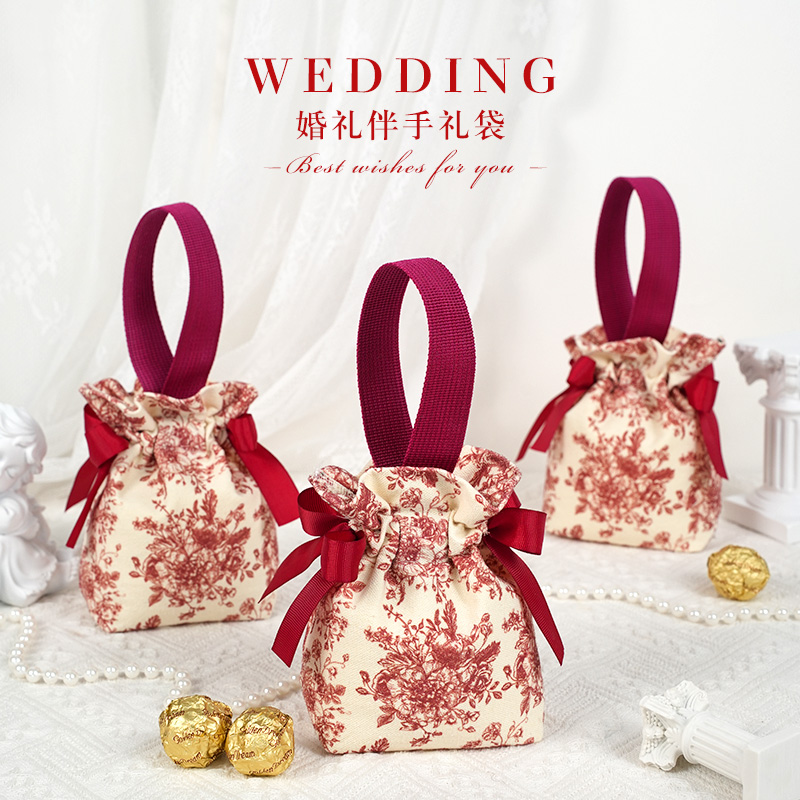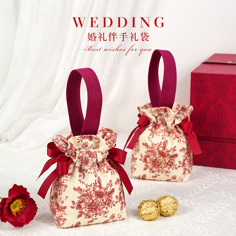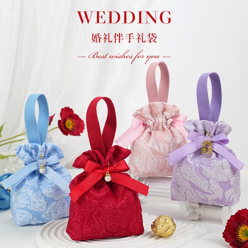 새로운 스타일의 웨딩 특수 천 웨딩 사탕 가방, 가벼운 고급 웨딩 사탕 상자, 접이식 웨딩 기념품 핸드백스토어 가기
