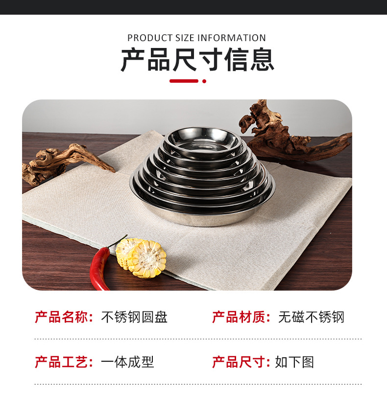 스테인리스 스틸 수프 접시, 특대형, 비자성, 가정용 원형 접시, 재료통, 수프 그릇, 요리 그릇, 접시, 평평한 바닥의 트레이