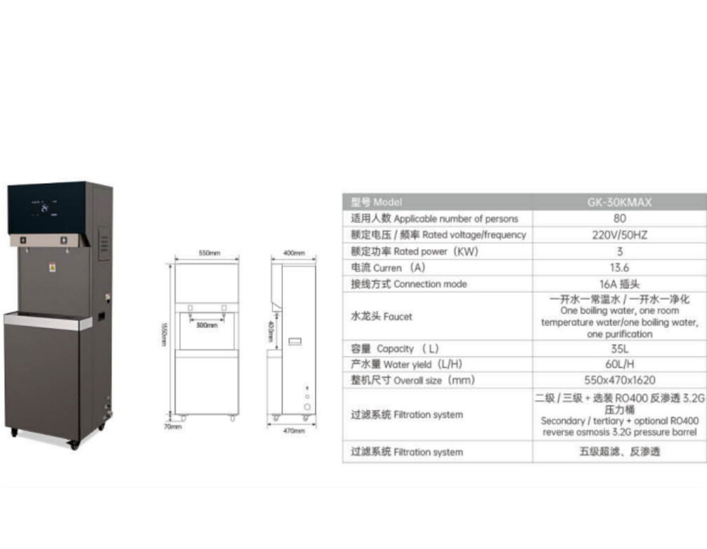 • GK-30KMAX (RO400 역삼투여과로 개봉 후 바로 마시기)