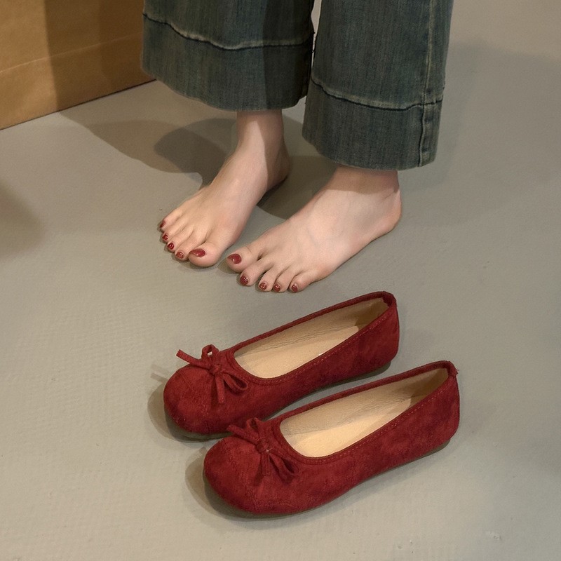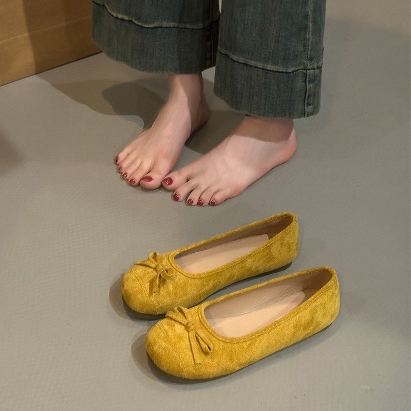 여성을위한 프랑스 복고풍 나비 매듭 발레 신발 2025 봄과 여름 새로운 스타일 얕은 입 플랫 바닥 스커트 싱글 신발 할머니 신발스토어 가기