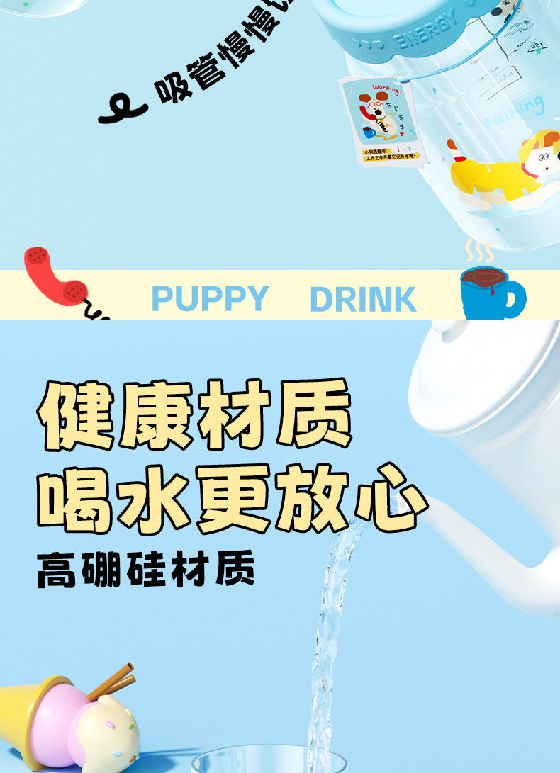 새로운 강아지 유리 컵, 귀엽고 대용량, 소녀용 사무실 밀짚 컵, 고붕규산 물컵 도매스토어 가기