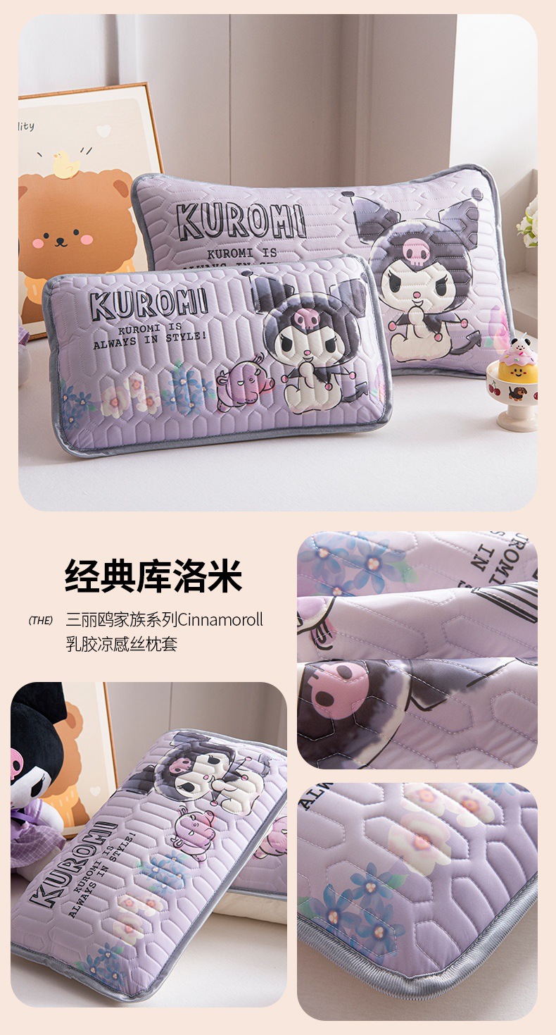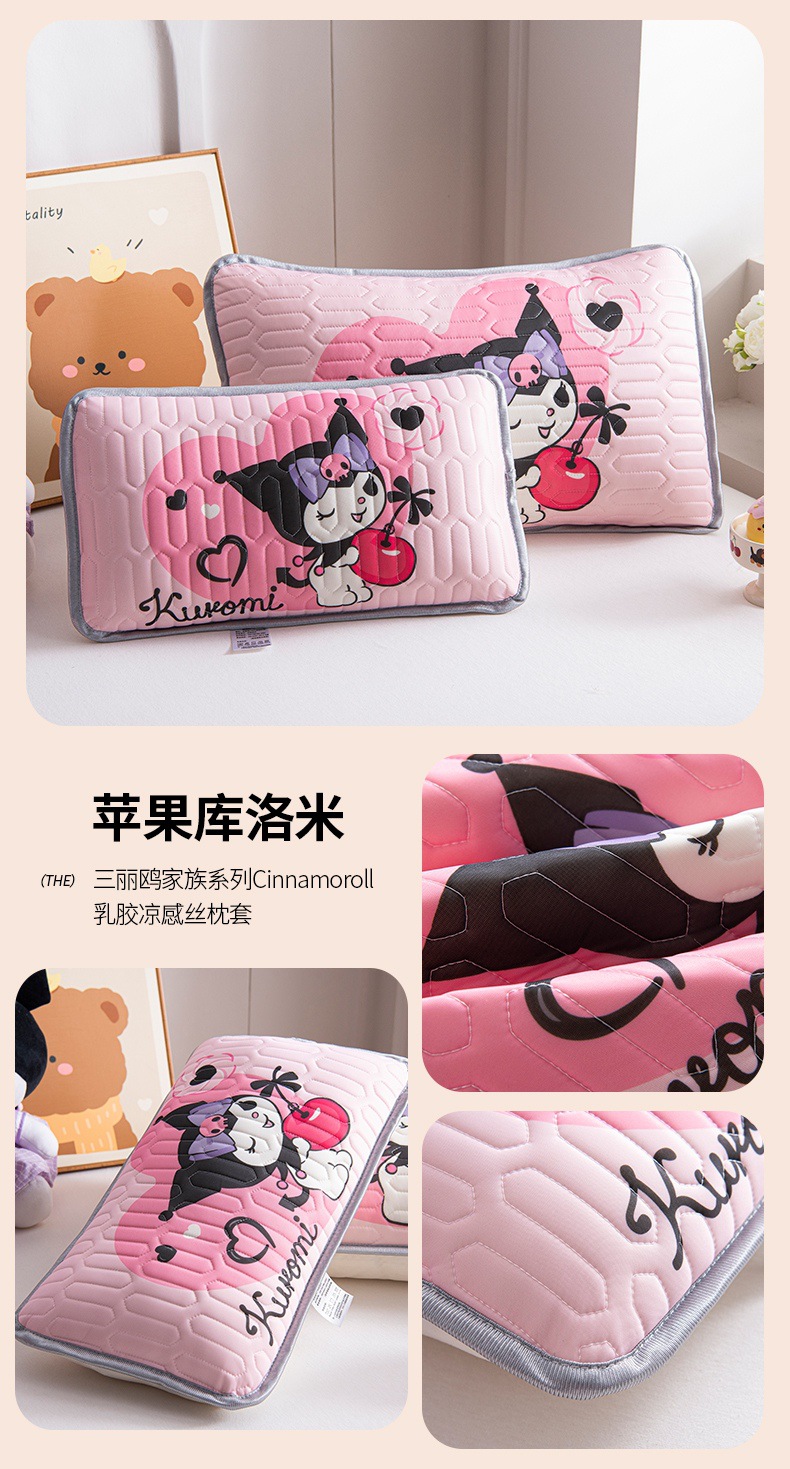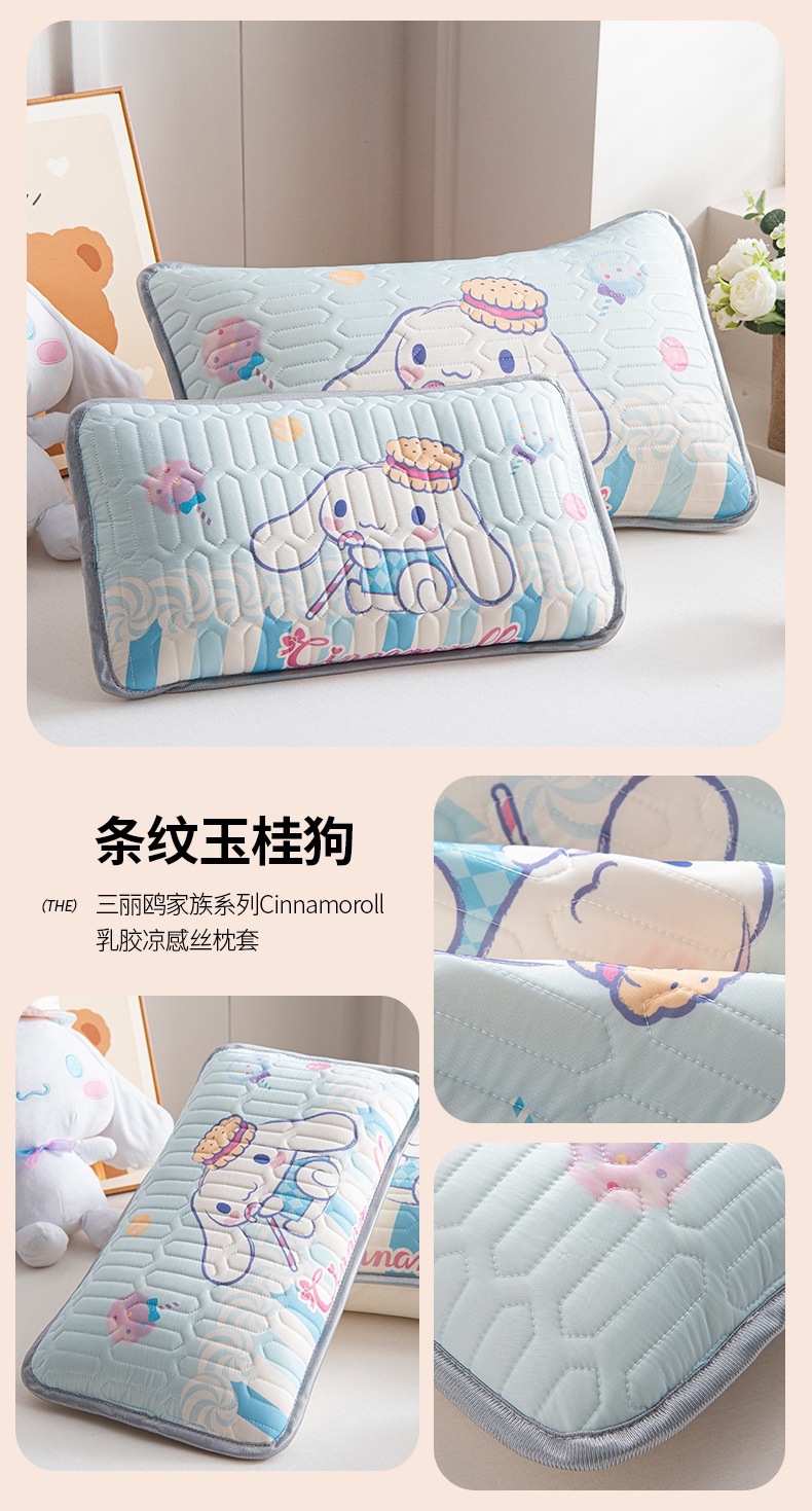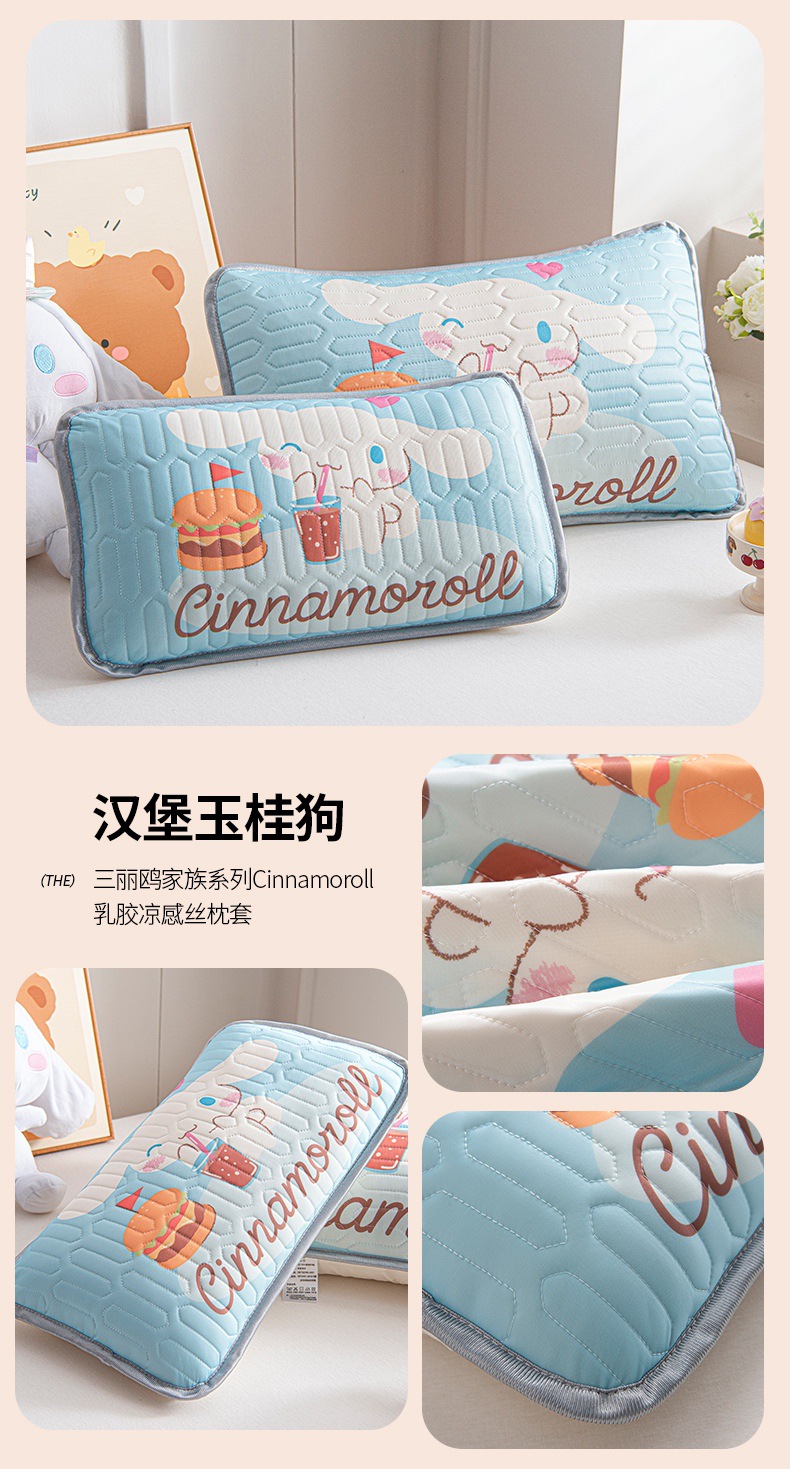 국경 간 Sanrio 아기 베개 커버 Kuromi 계피 개 어린이 쿨 아이스 실크 라텍스 베개 학생 베개 커버스토어 가기