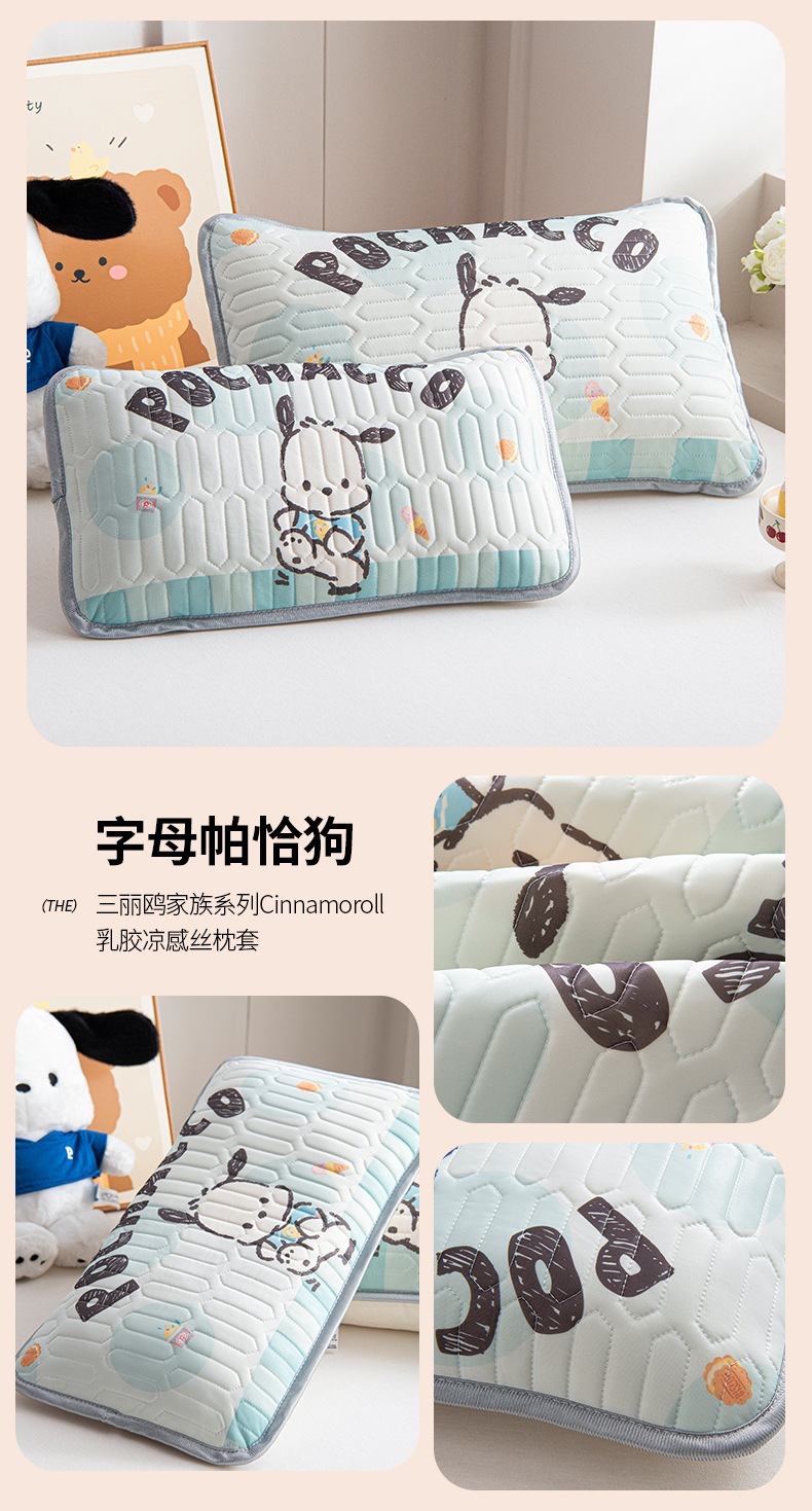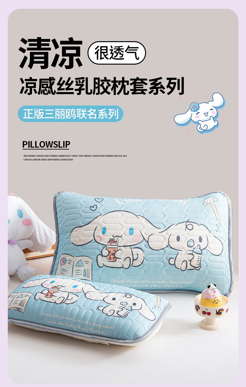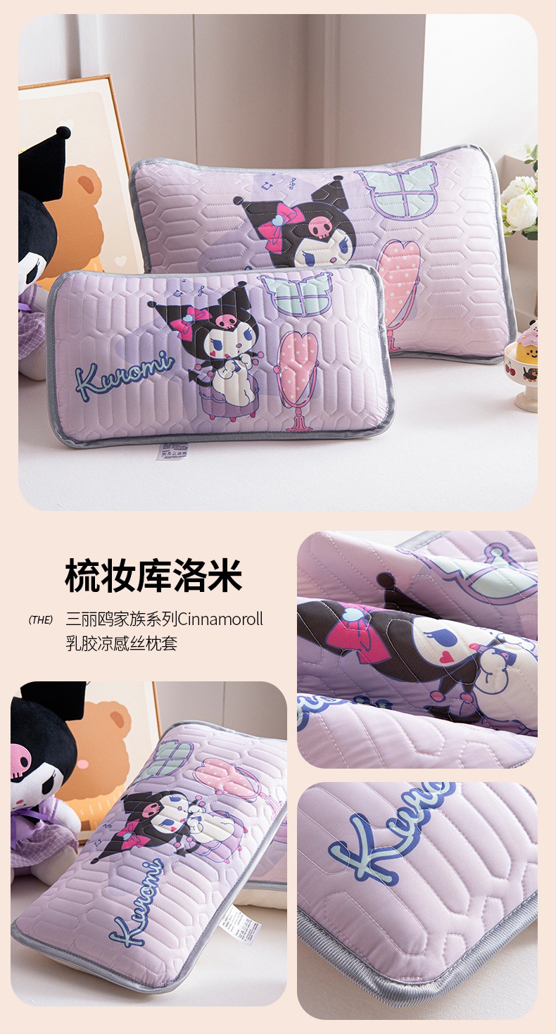 국경 간 Sanrio 아기 베개 커버 Kuromi 계피 개 어린이 쿨 아이스 실크 라텍스 베개 학생 베개 커버스토어 가기
