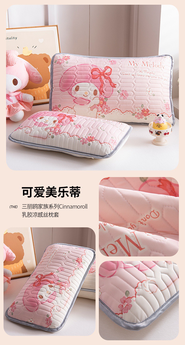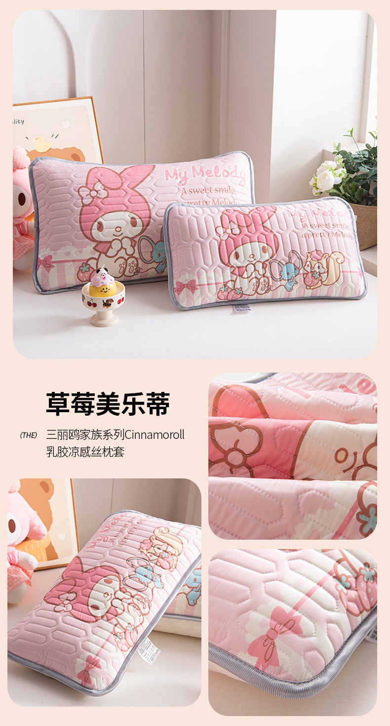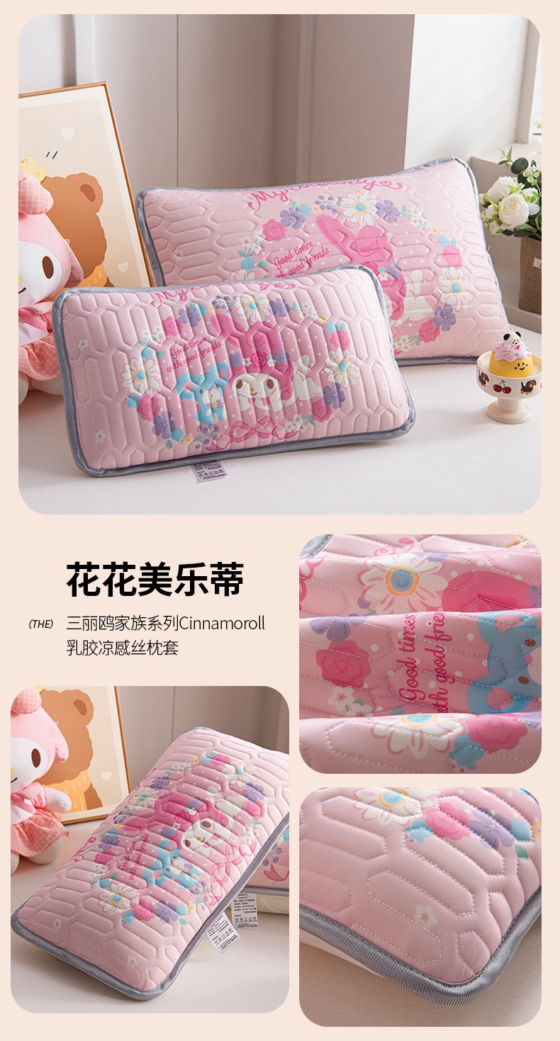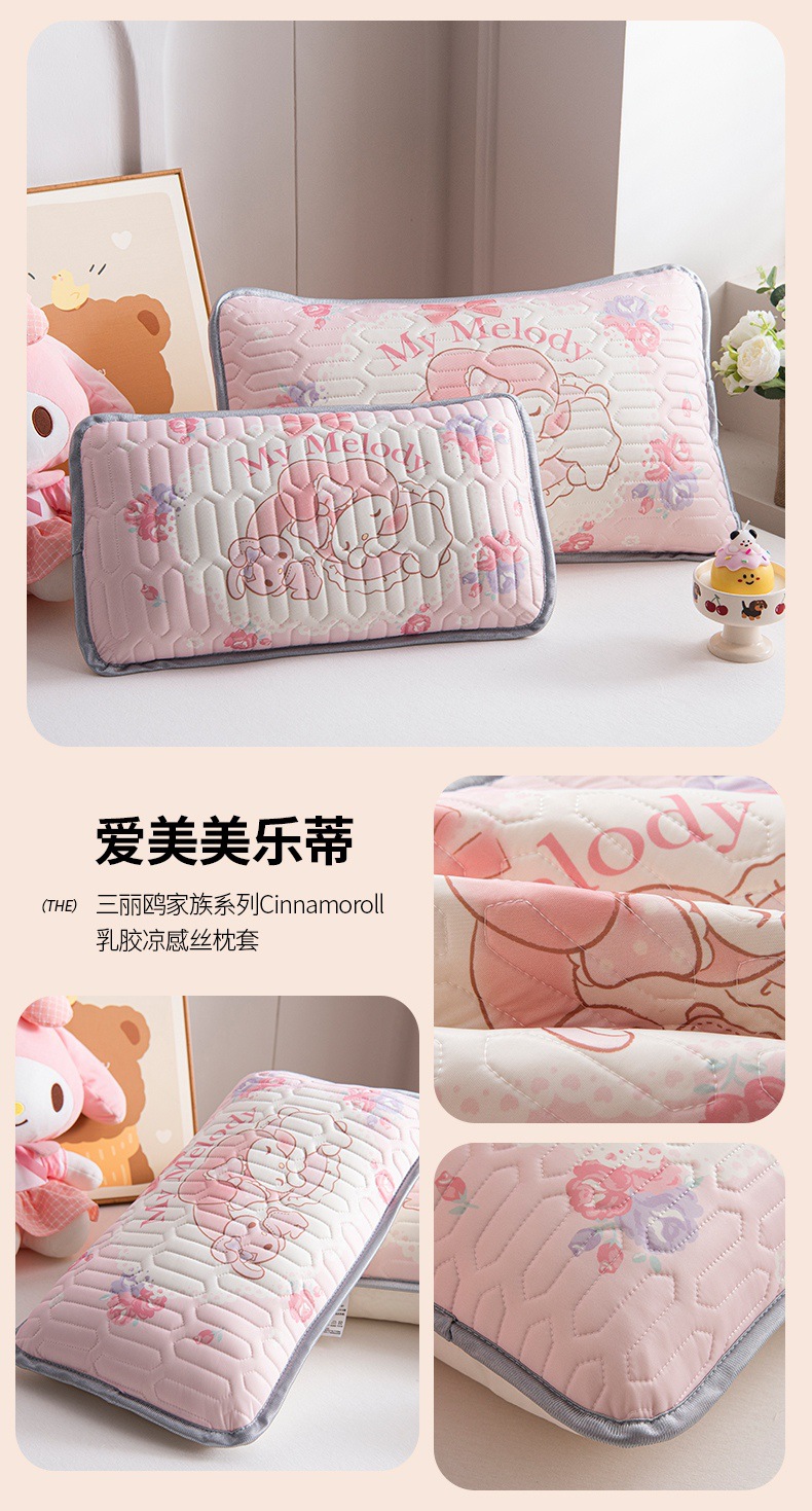 국경 간 Sanrio 아기 베개 커버 Kuromi 계피 개 어린이 쿨 아이스 실크 라텍스 베개 학생 베개 커버스토어 가기