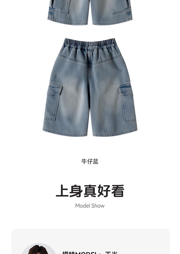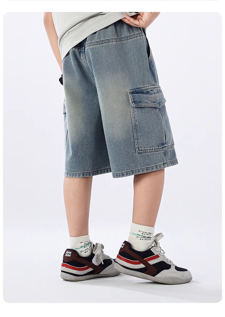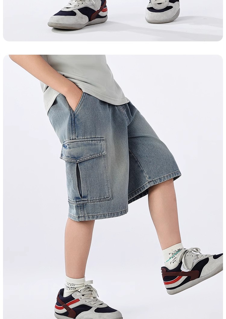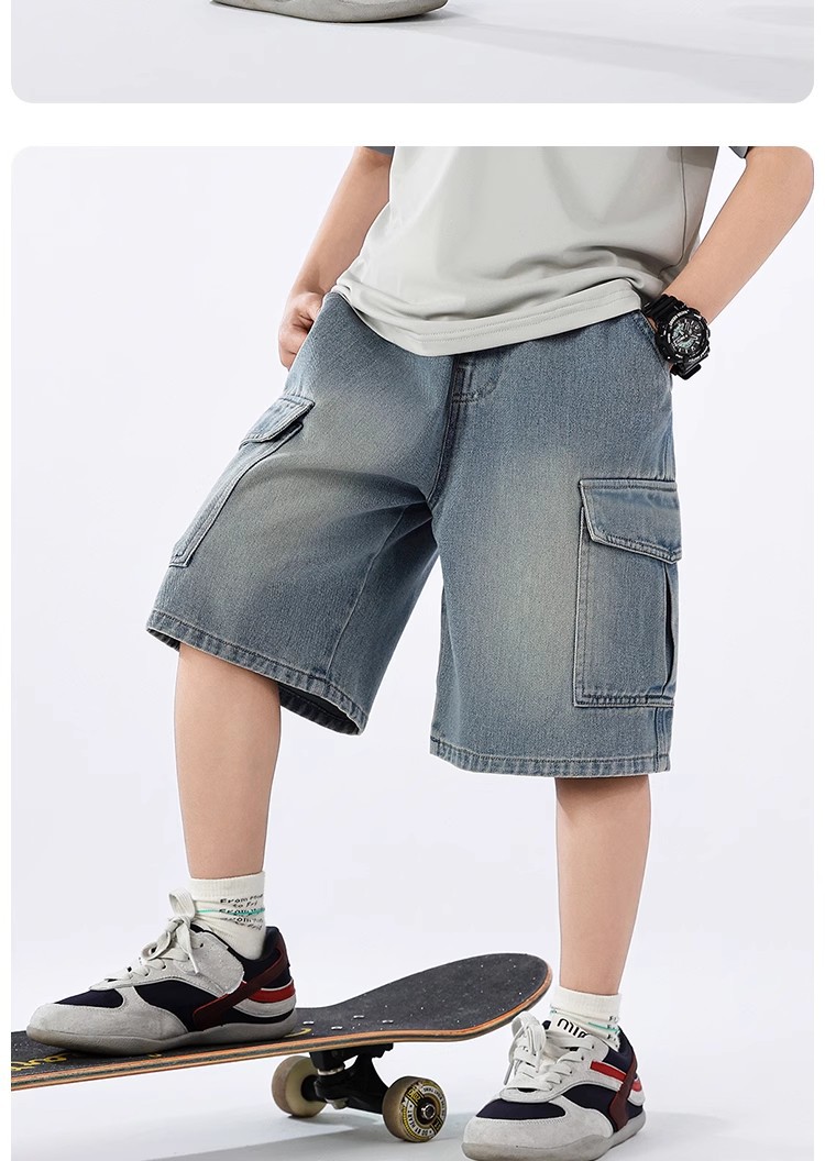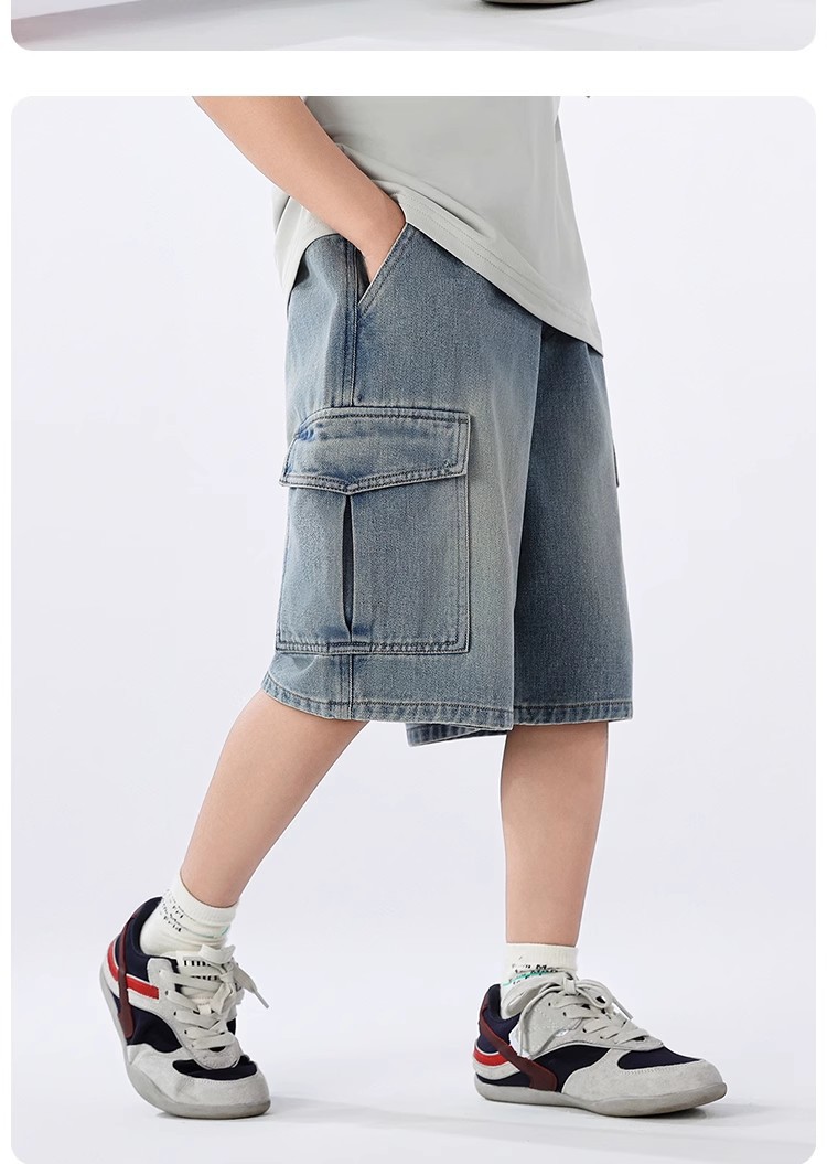 2025 신상 아동바지 작업복 데님반바지 남아 데님반바지 여름 얇은 트렌디한 5부바지 아메리칸 스타일스토어 가기