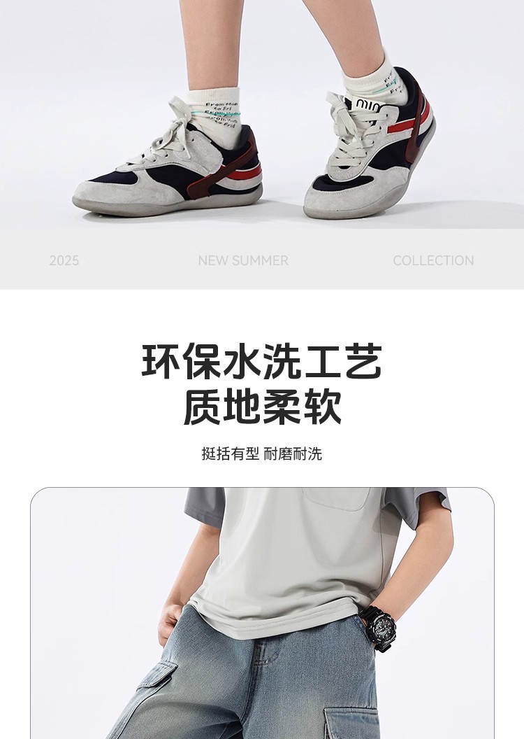 2025 신상 아동바지 작업복 데님반바지 남아 데님반바지 여름 얇은 트렌디한 5부바지 아메리칸 스타일