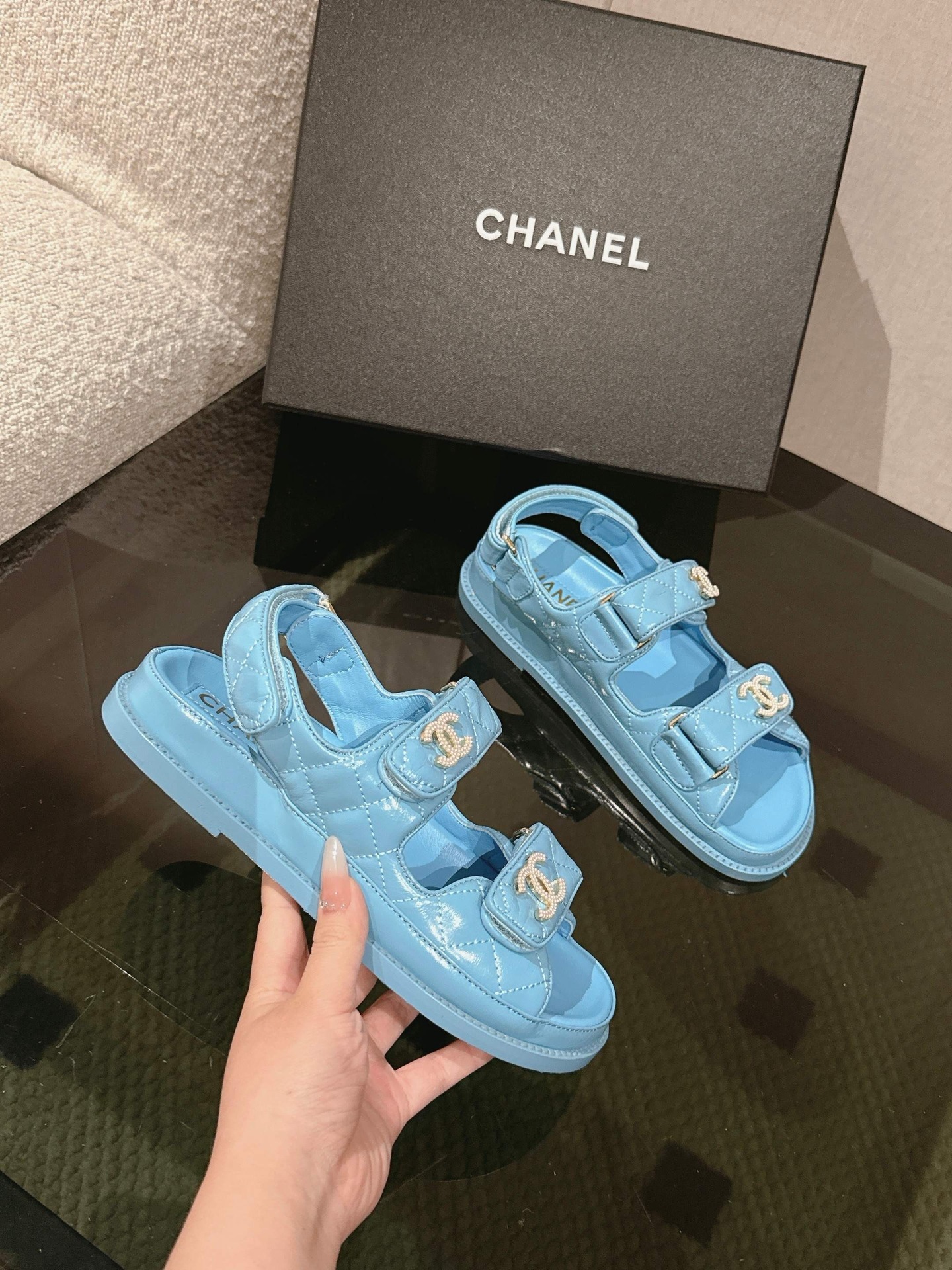 Xiaoxiangfeng 벨크로 플랫 캐주얼 로마 샌들 여성 2024 여름 정품 가죽 새로운 플랫 오픈 발가락 비치 신발스토어 가기