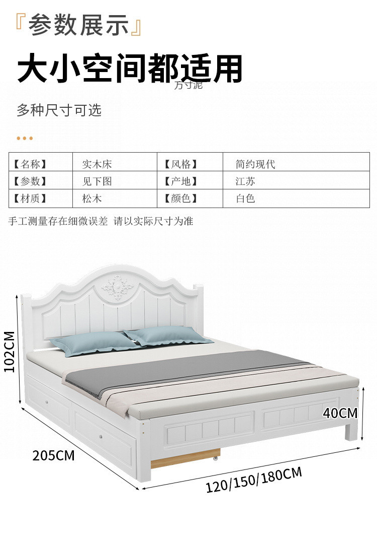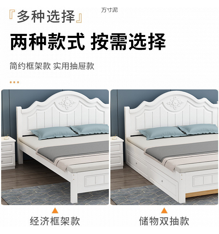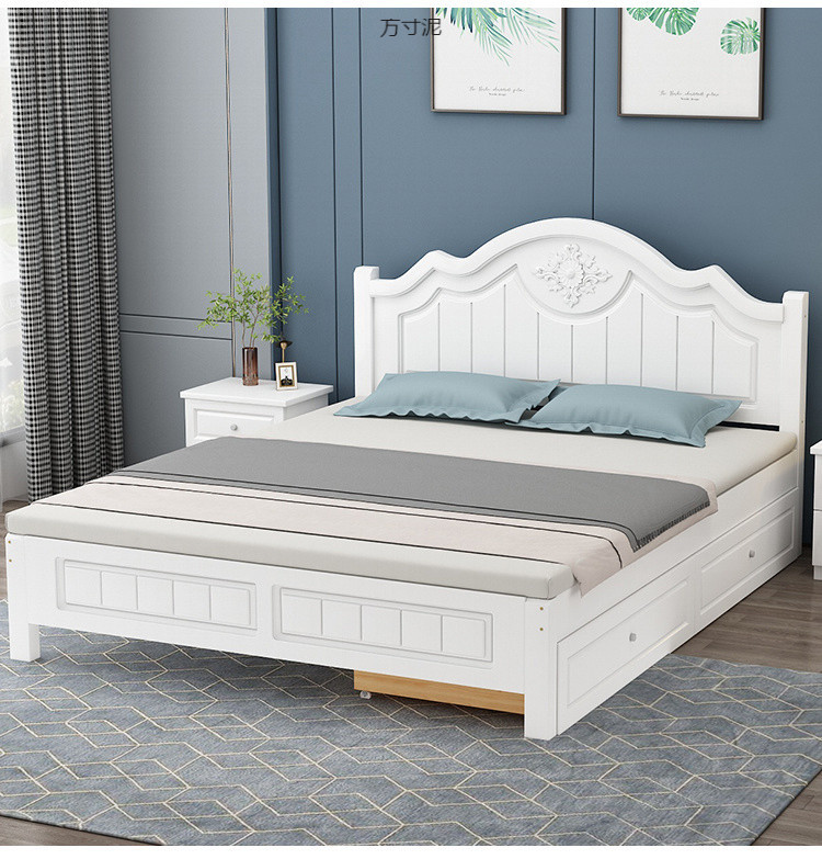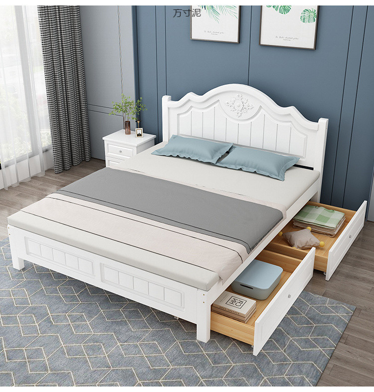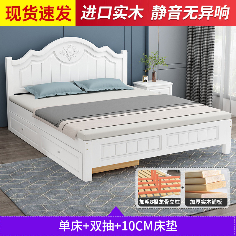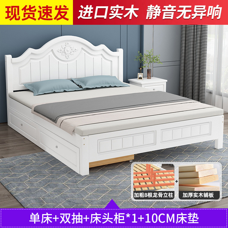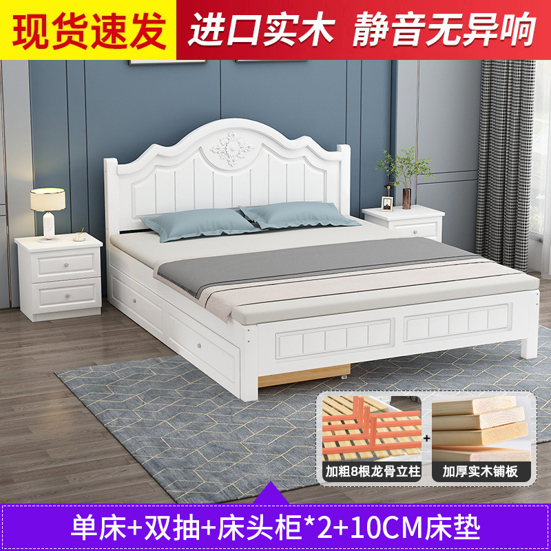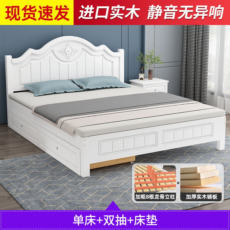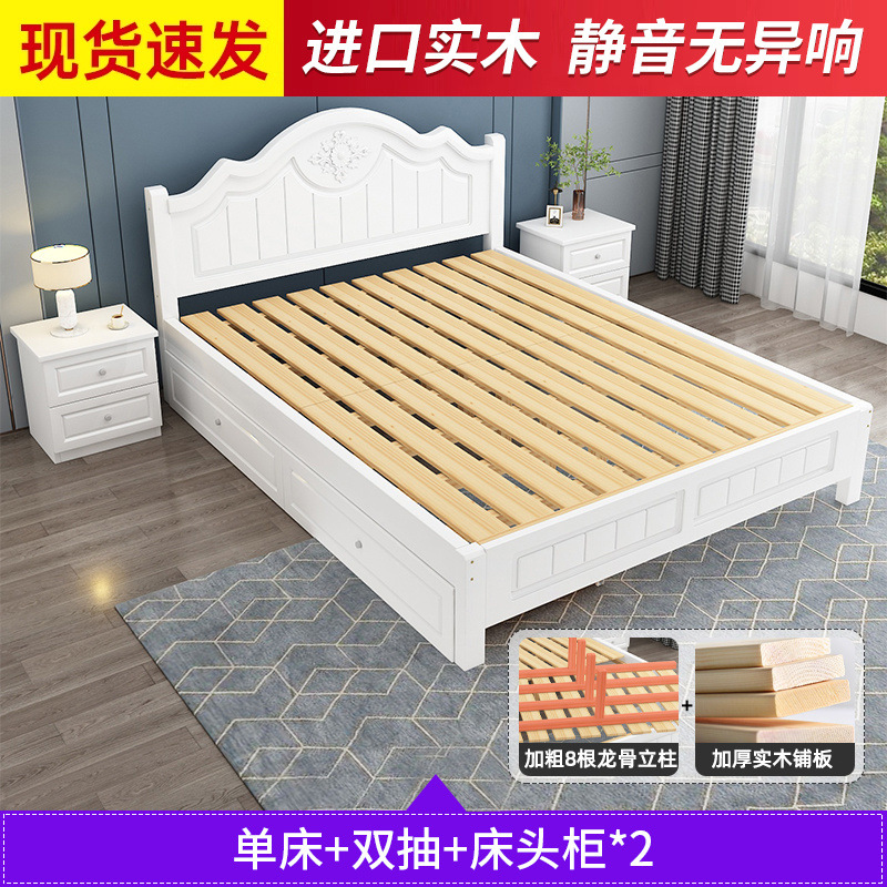 유럽식 원목 침대 1.8m 간단한 마스터 침실 더블 침대 1.5 임대용 경제적인 싱글 침대 1.2m 도매스토어 가기