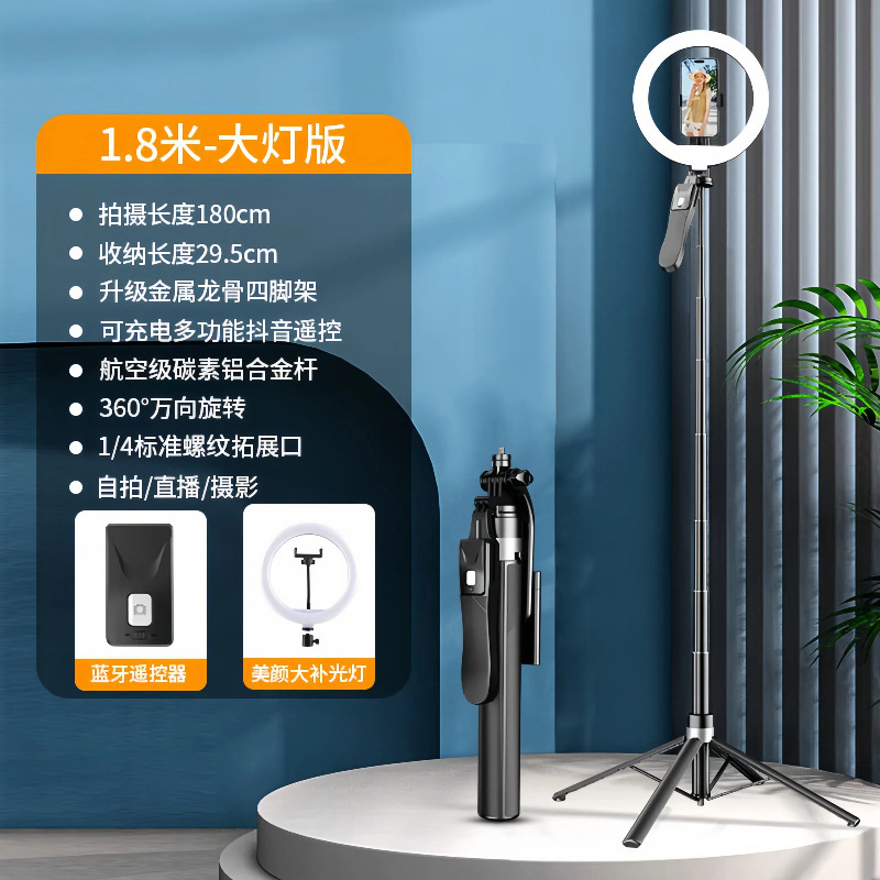 • 알루미늄 합금 1.8m [단일 뷰티 램프 모델] 4축 손떨림 방지 팬/틸트 + 안정적인 용골 4각대 + 충전 블루투스 리모콘