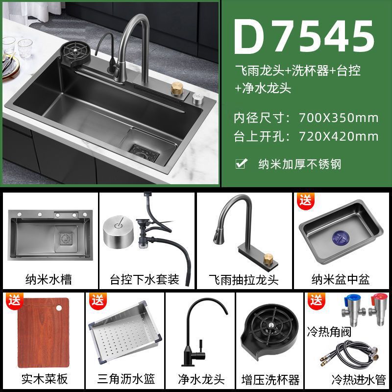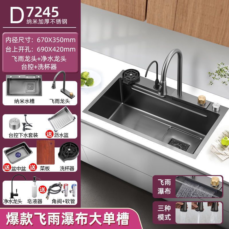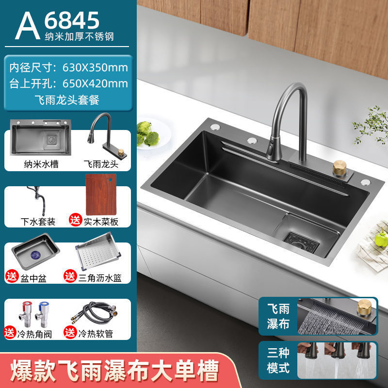 주방 싱크대 나노 싱크대 304 스테인레스 스틸 인터넷 연예인 싱크대 Douyin Rainfall Waterfall 고급 대형 싱글 싱크대