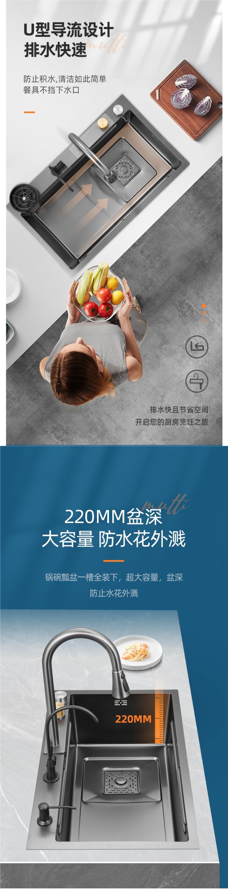 주방 싱크대 나노 싱크대 304 스테인레스 스틸 인터넷 연예인 싱크대 Douyin Rainfall Waterfall 고급 대형 싱글 싱크대스토어 가기