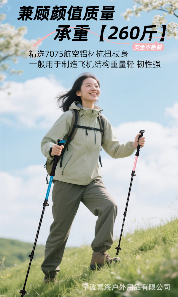 야외 트레킹 스틱, 접이식 알루미늄 합금 여성용 지팡이, 전문 야외 하이킹 장비, 초경량 핑크 어린이 지팡이스토어 가기