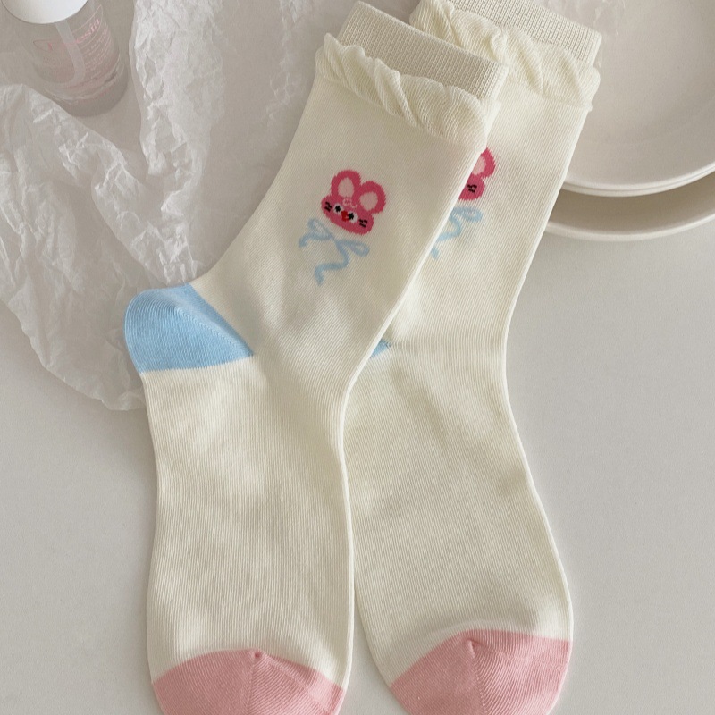 핑크색 여성용 무봉제 양말, 봄 여름 신상 얇은 일본식 귀여운 소녀 면양말, 만화 양말스토어 가기