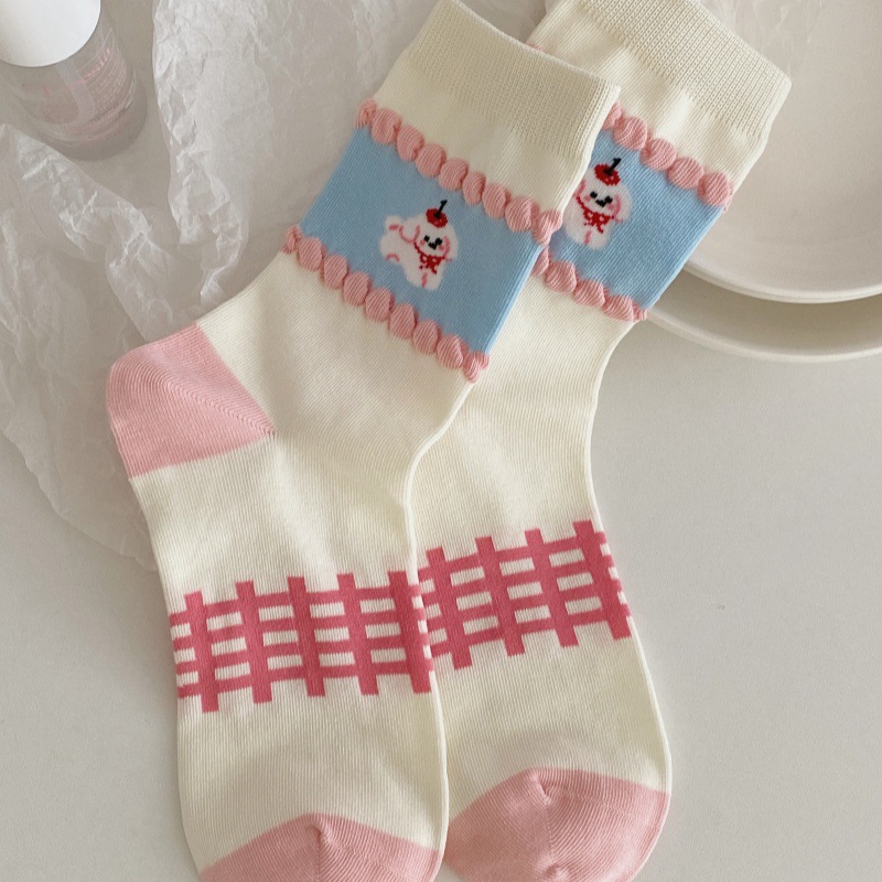 핑크색 여성용 무봉제 양말, 봄 여름 신상 얇은 일본식 귀여운 소녀 면양말, 만화 양말