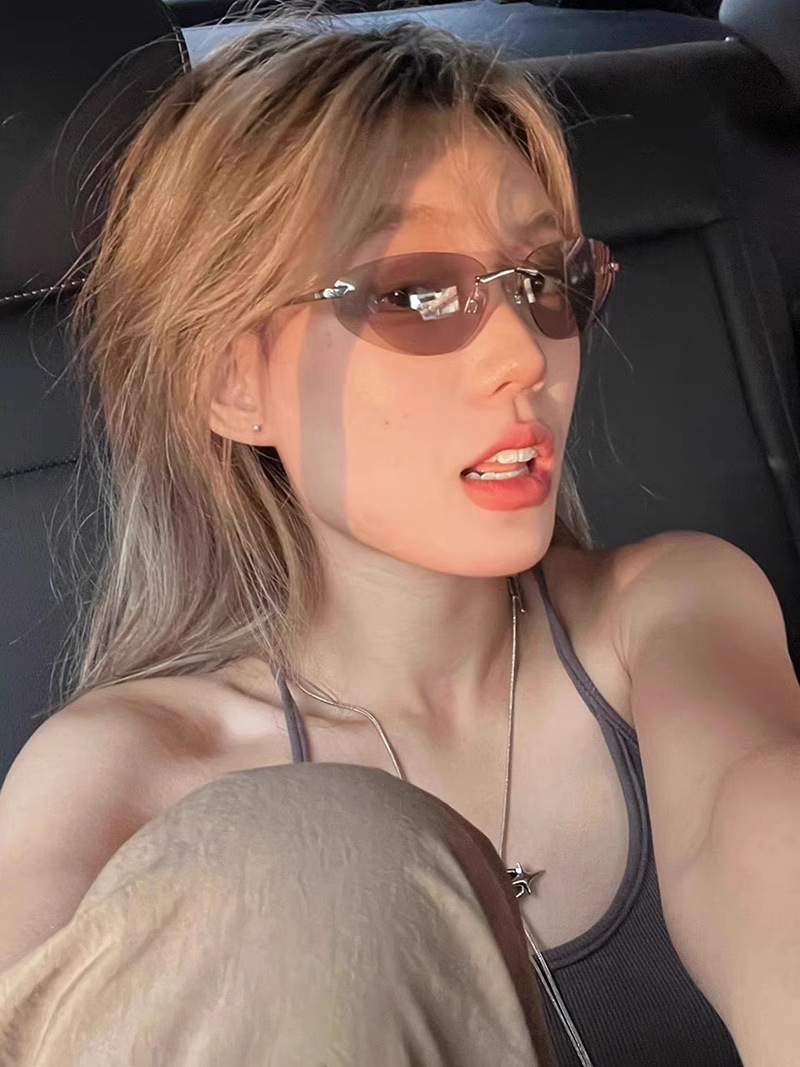 유럽과 미국 스타일의 무테 선글라스 복고풍 여성 고급 y2k 핫 소녀 스트리트 스타일 남성용 자외선 차단 선글라스스토어 가기