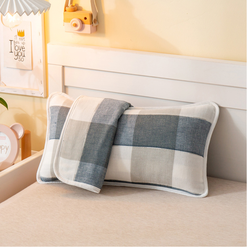 • 일본식 대형 체크무늬 블루 거즈 베갯잇